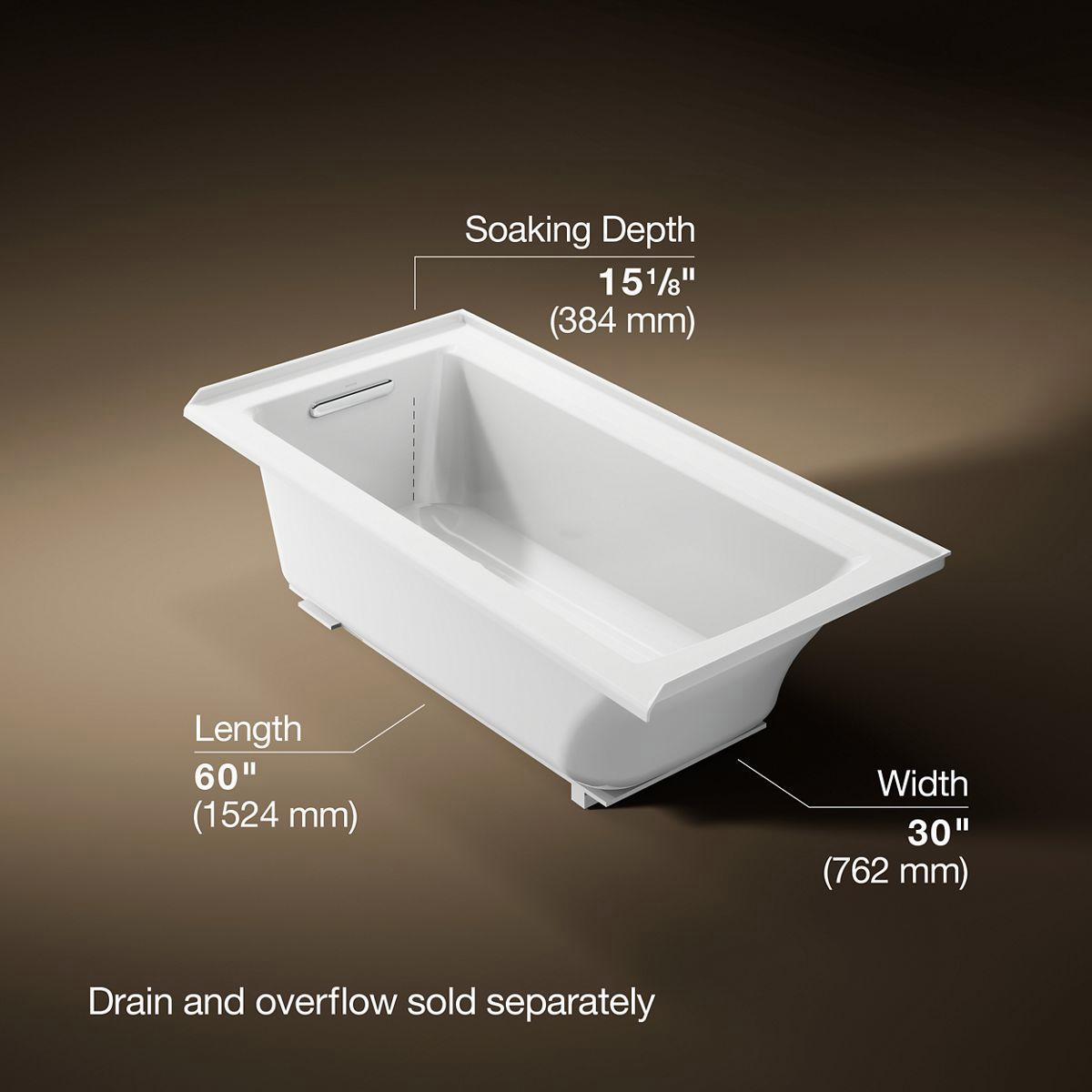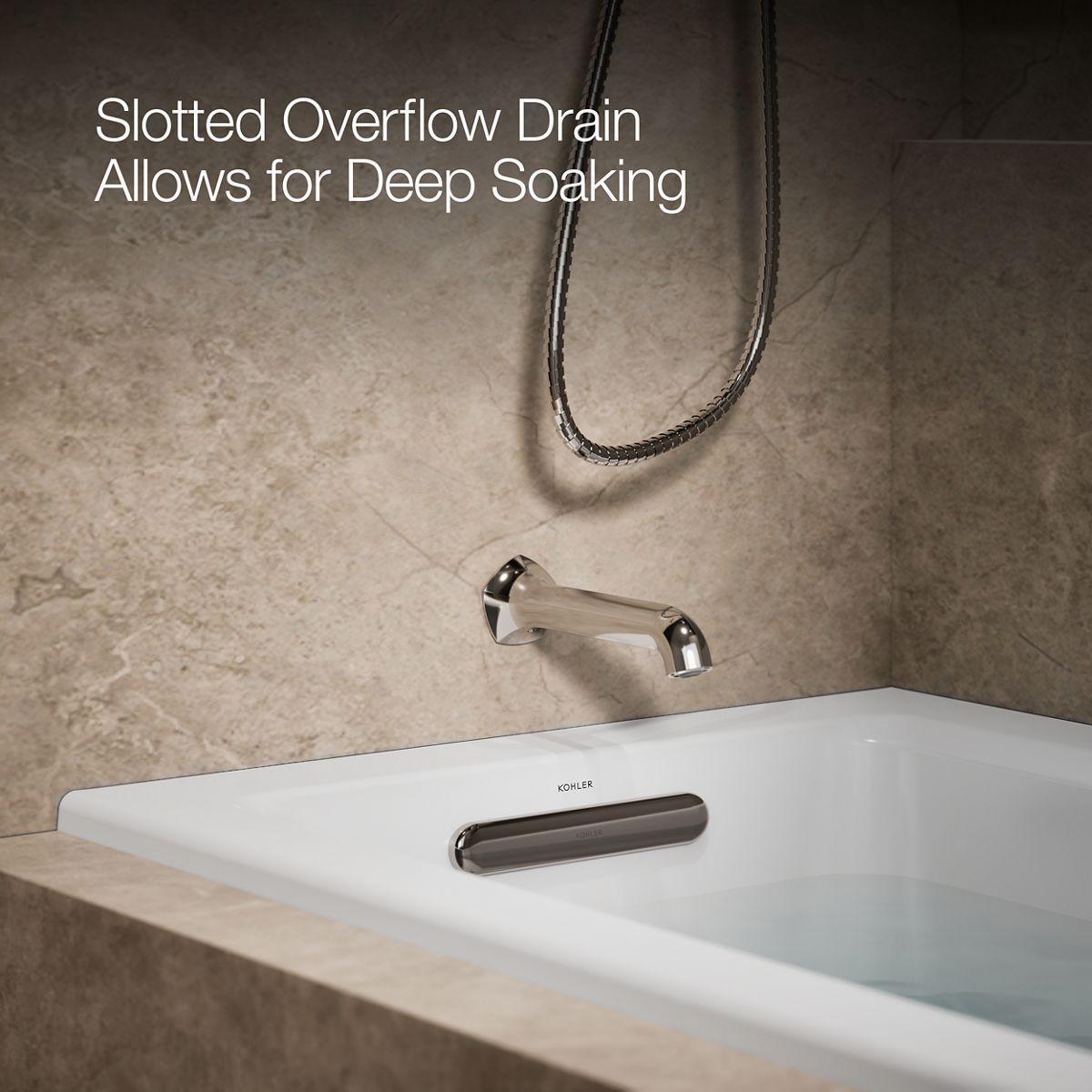 - Slotted overflow allows for deep soaking.