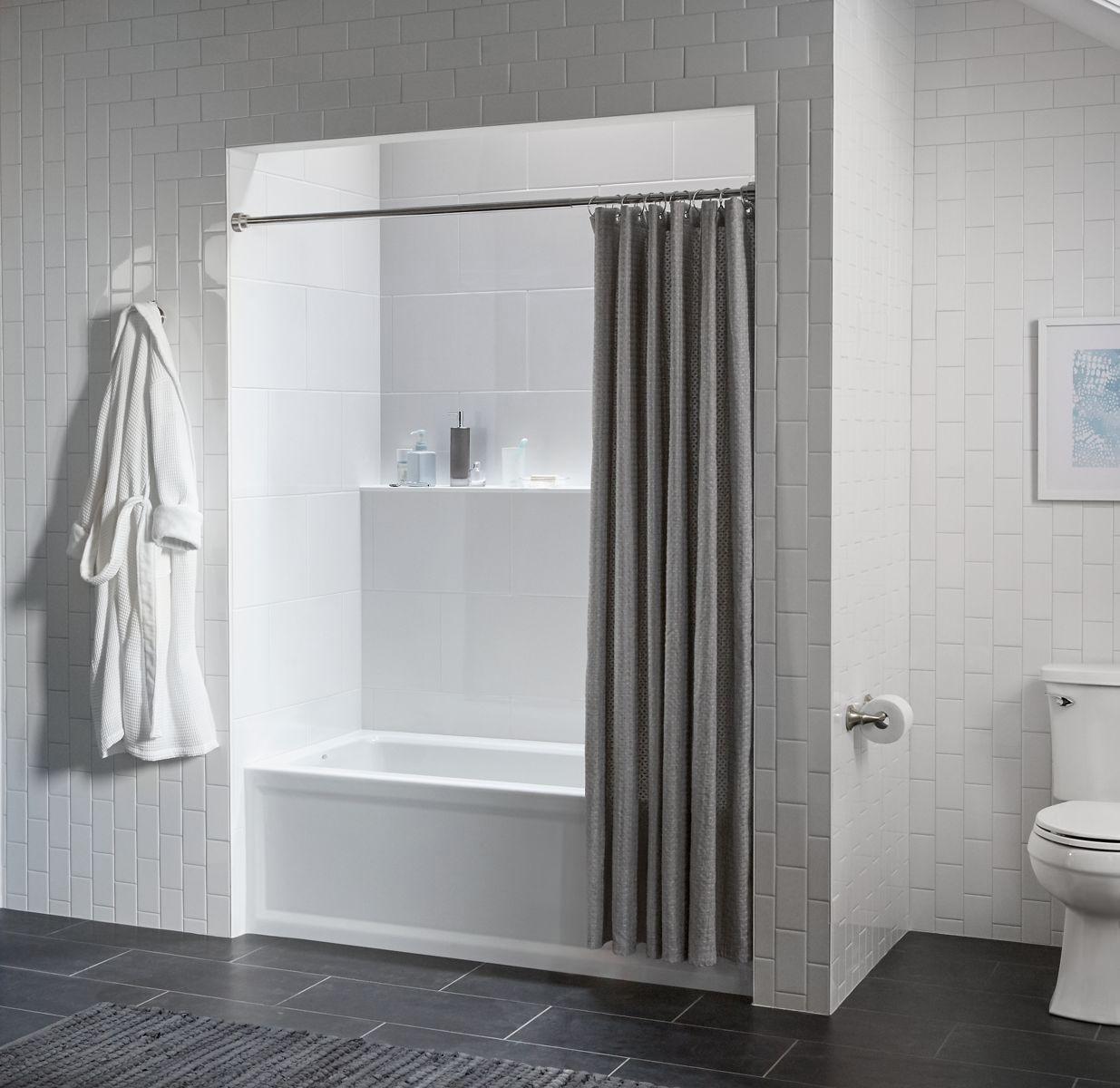 - Integral flange helps prevent water from seeping behind wall and simplifies alcove installation.