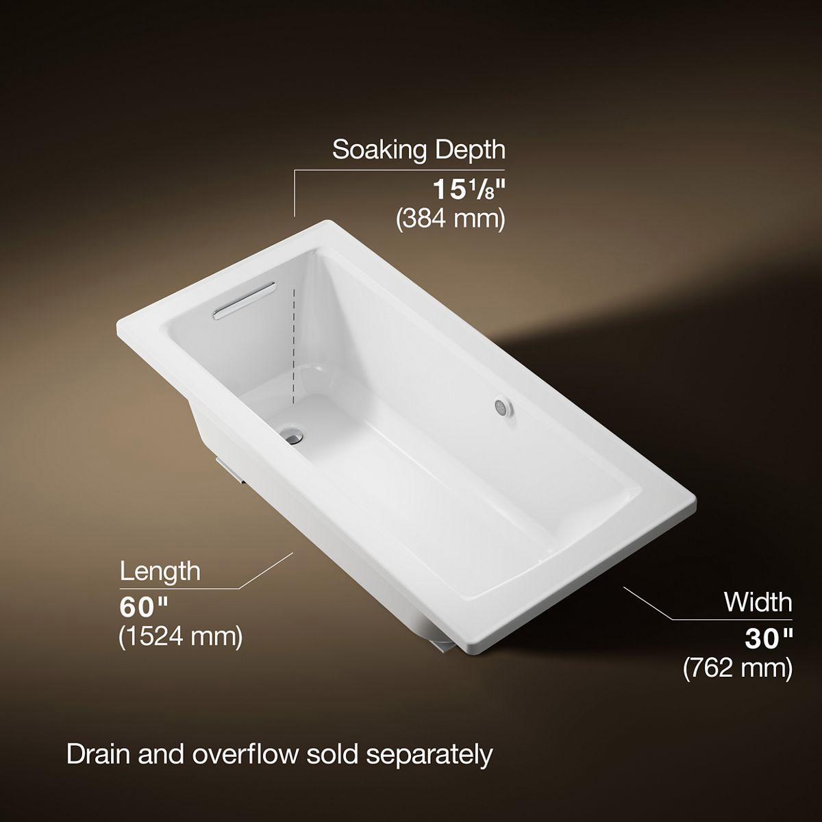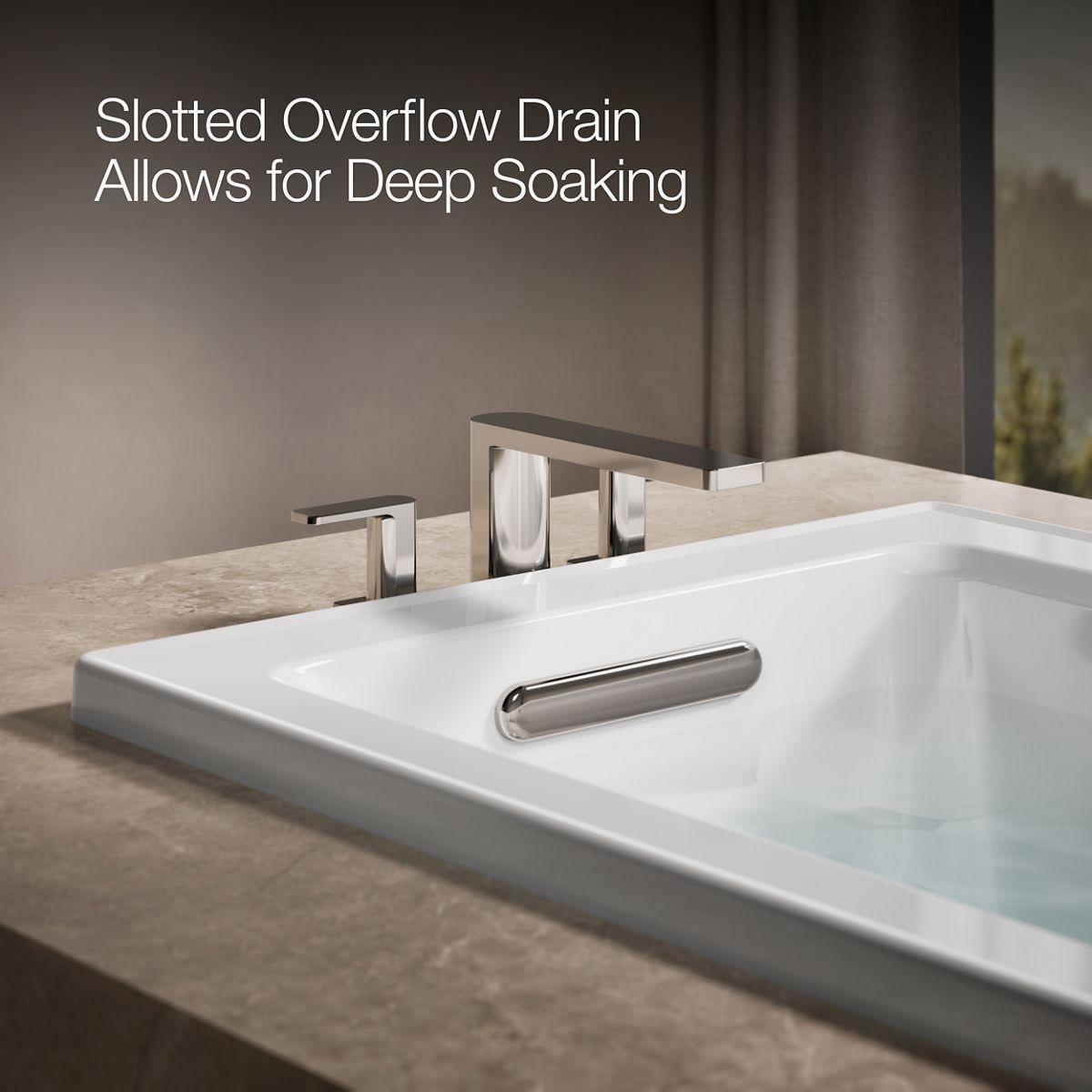 - Slotted overflow allows for deep soaking.