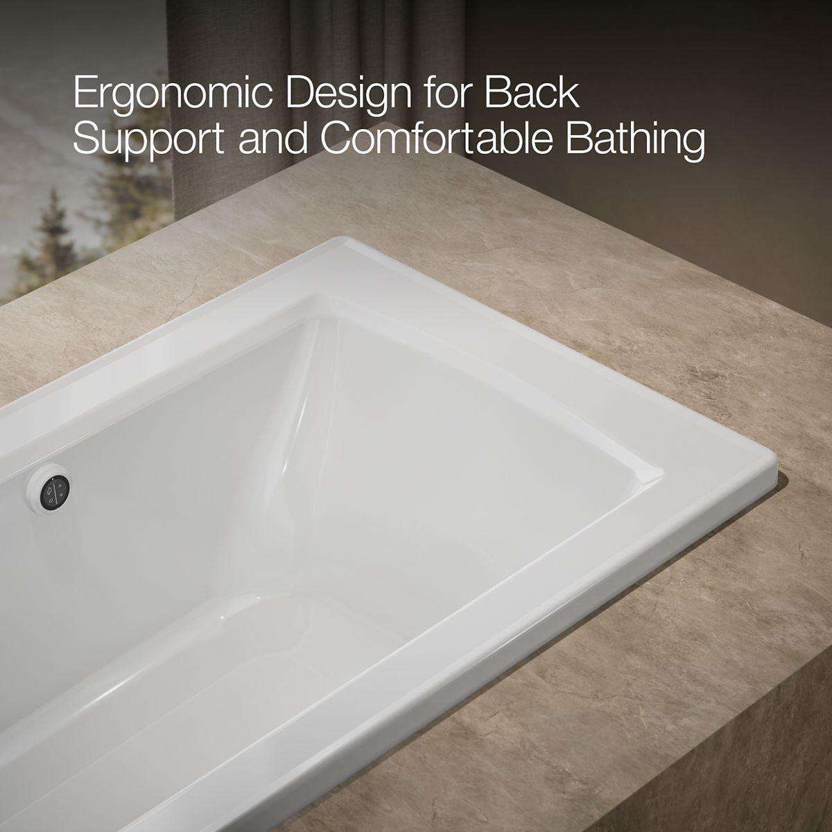 Taking its design cues from traditional Craftsman furniture, the Archer line of baths reveals beveled edges and curved bases for a clean, sophisticated style. This bath's heated surface warms the back and neck with adjustable temperature settings to create a soothing, spa-like environment. A low step-over height offers easy access while allowing deep, comfortable soaking. A lumbar arch gently supports the natural curves of your body.