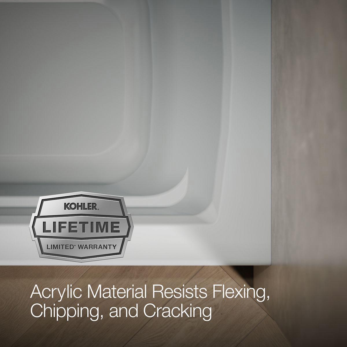 - Integral flange helps prevent water from seeping behind wall and simplifies alcove installation.