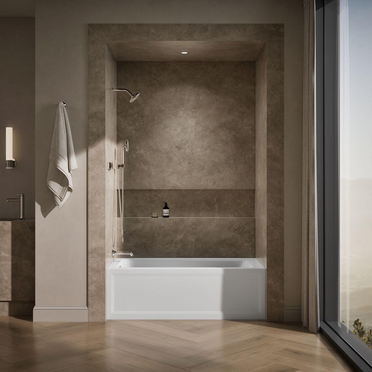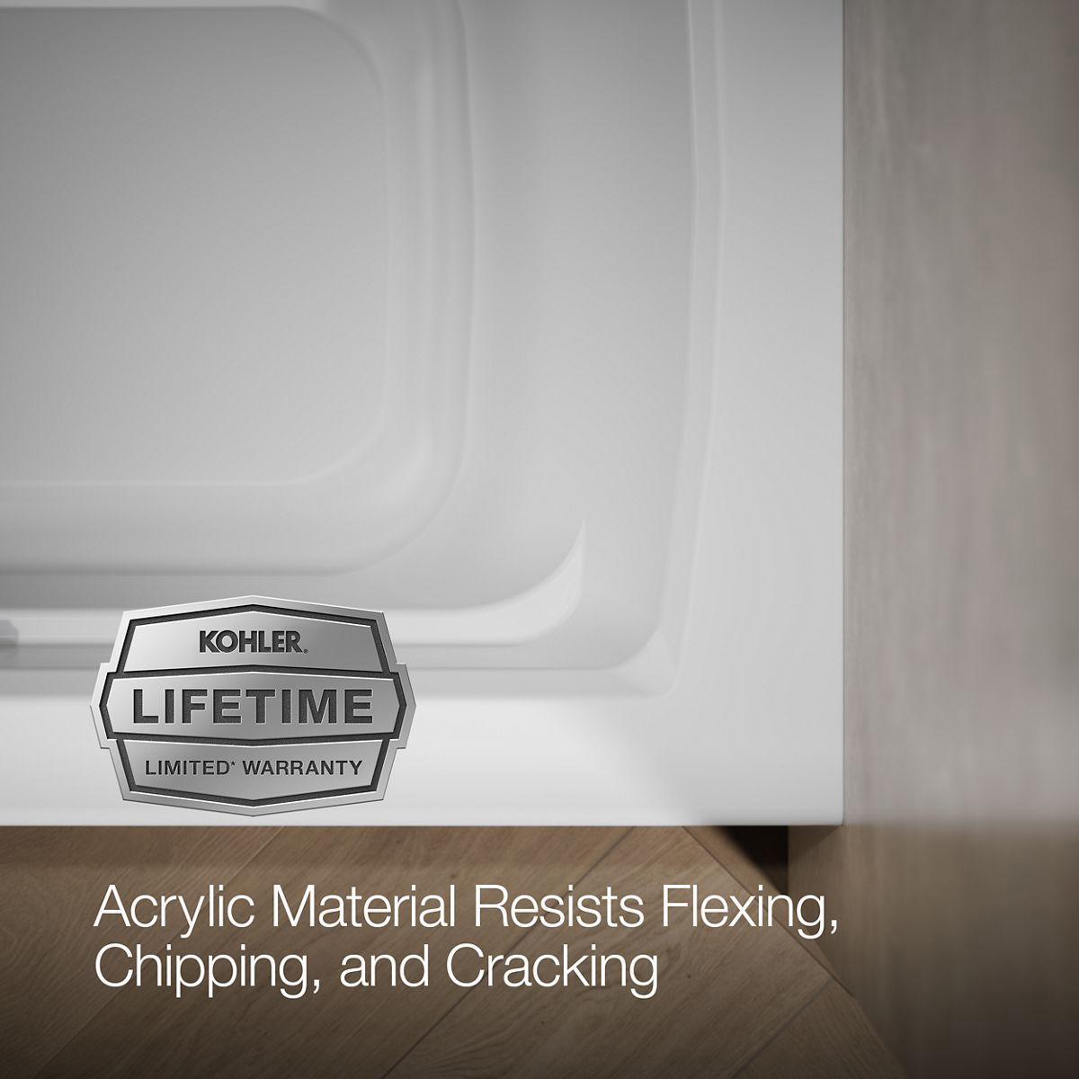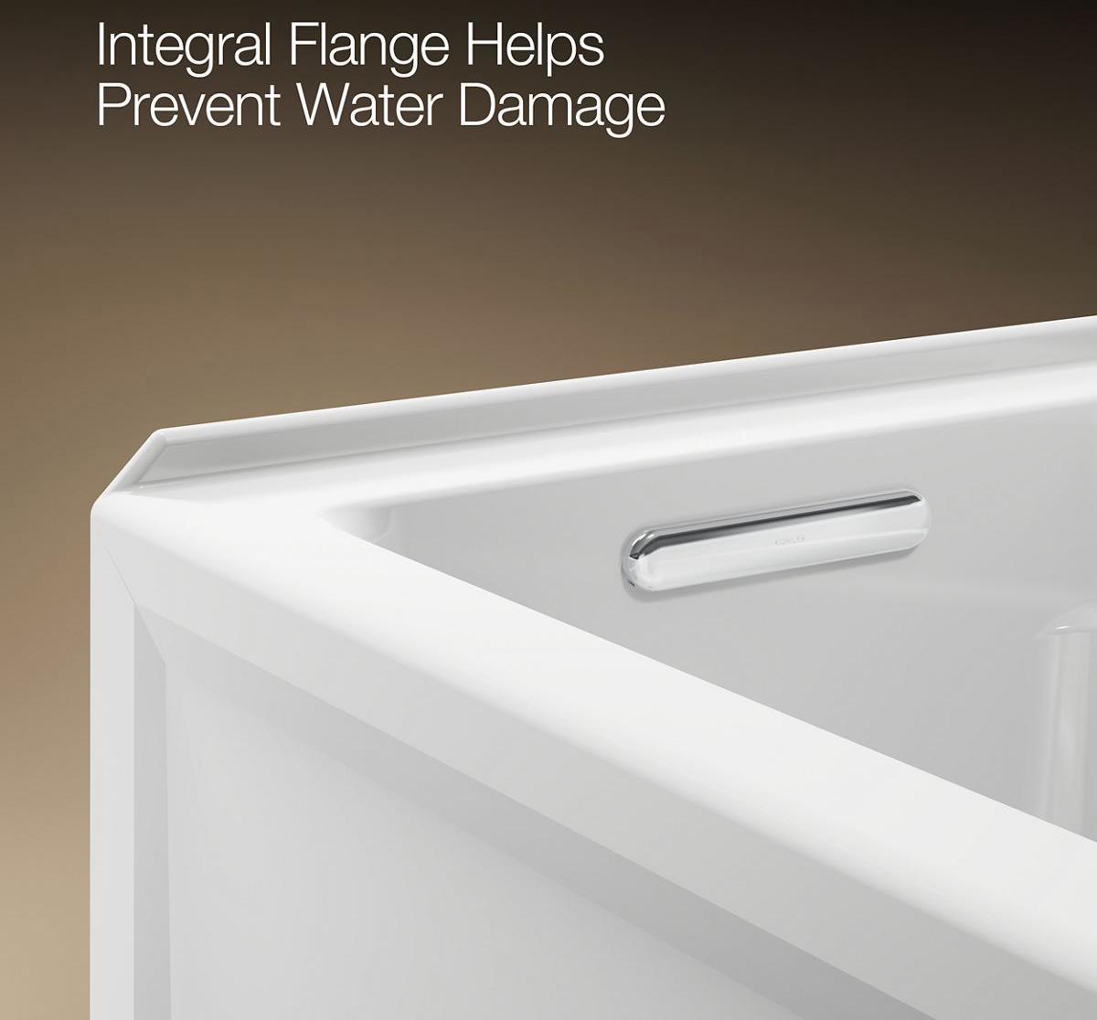 - Integral flange helps prevent water from seeping behind wall and simplifies alcove installation.
