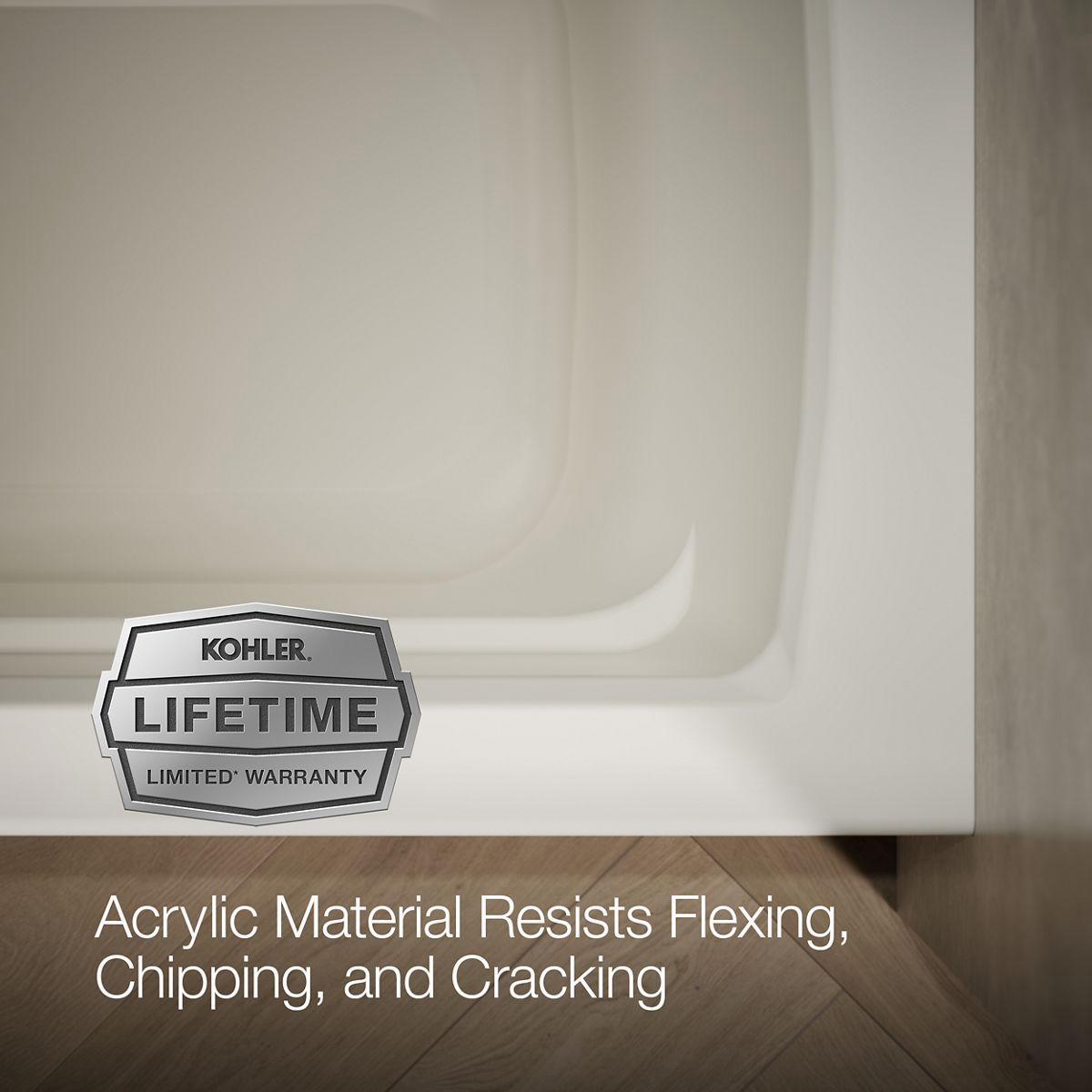 - Integral flange helps prevent water from seeping behind wall and simplifies alcove installation.