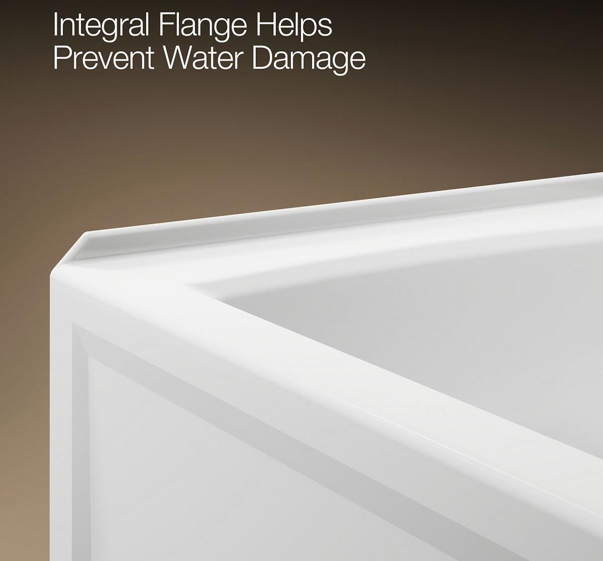- Integral flange helps prevent water from seeping behind wall and simplifies alcove installation.