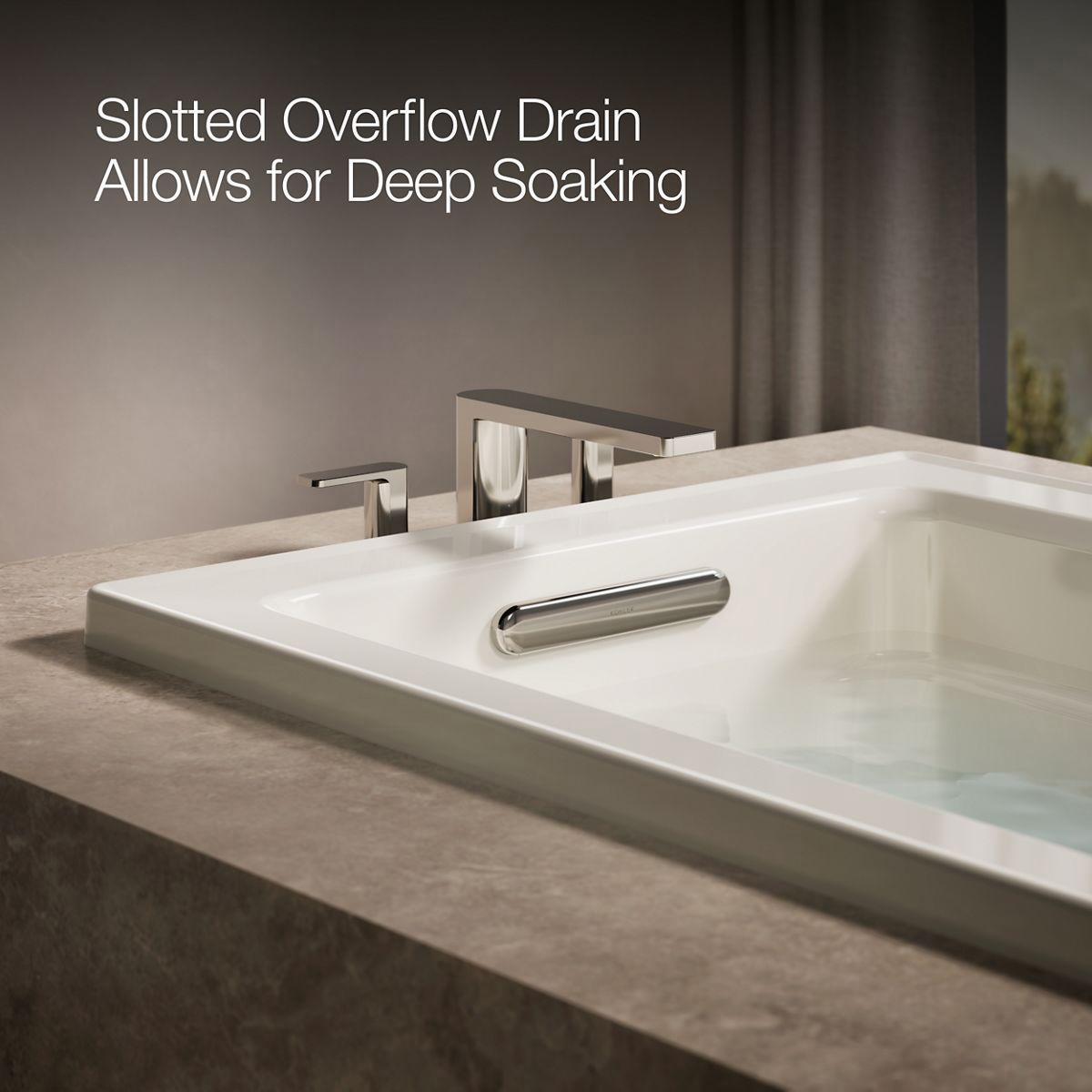 - Slotted overflow allows for deep soaking.