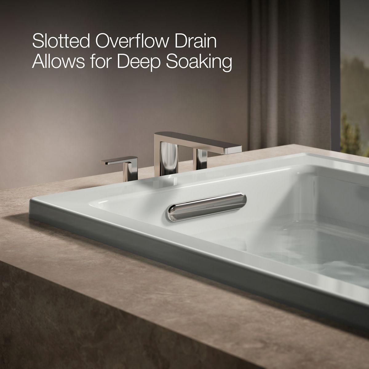 - Slotted overflow allows for deep soaking.
