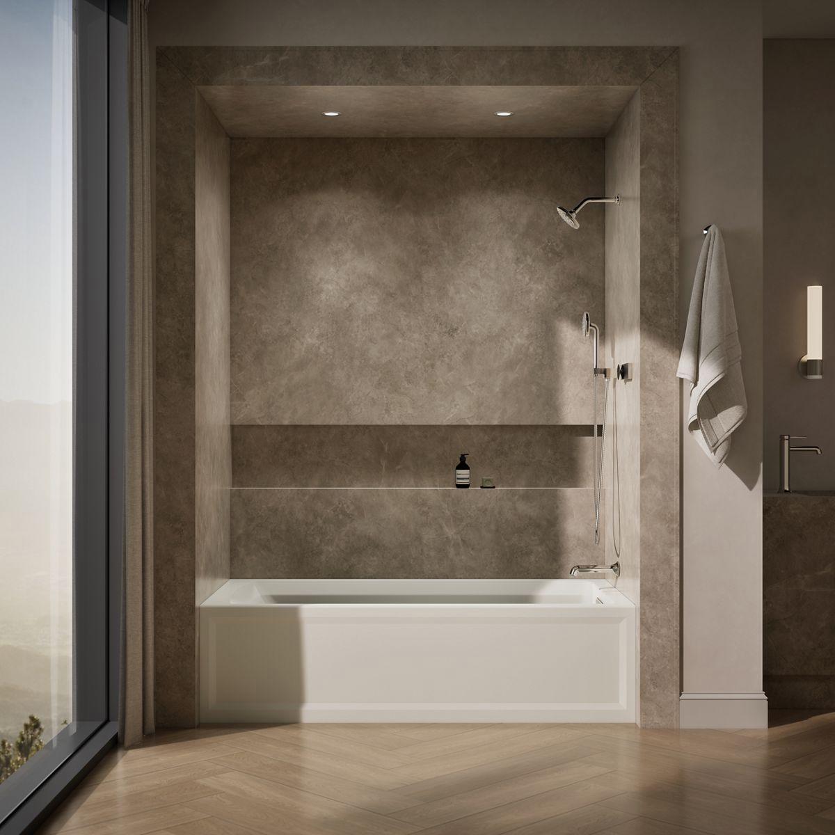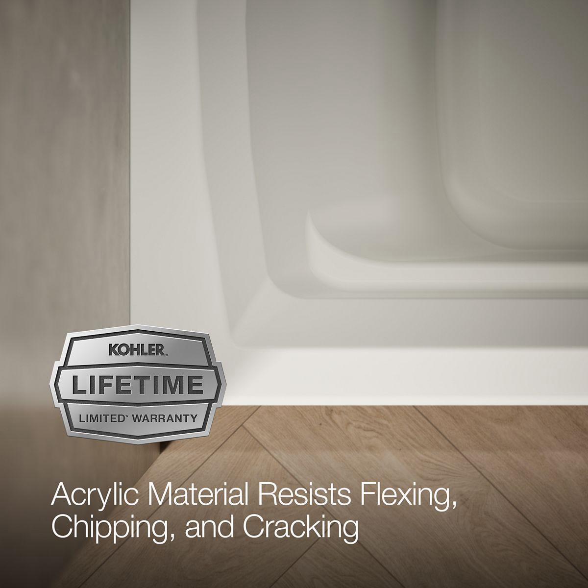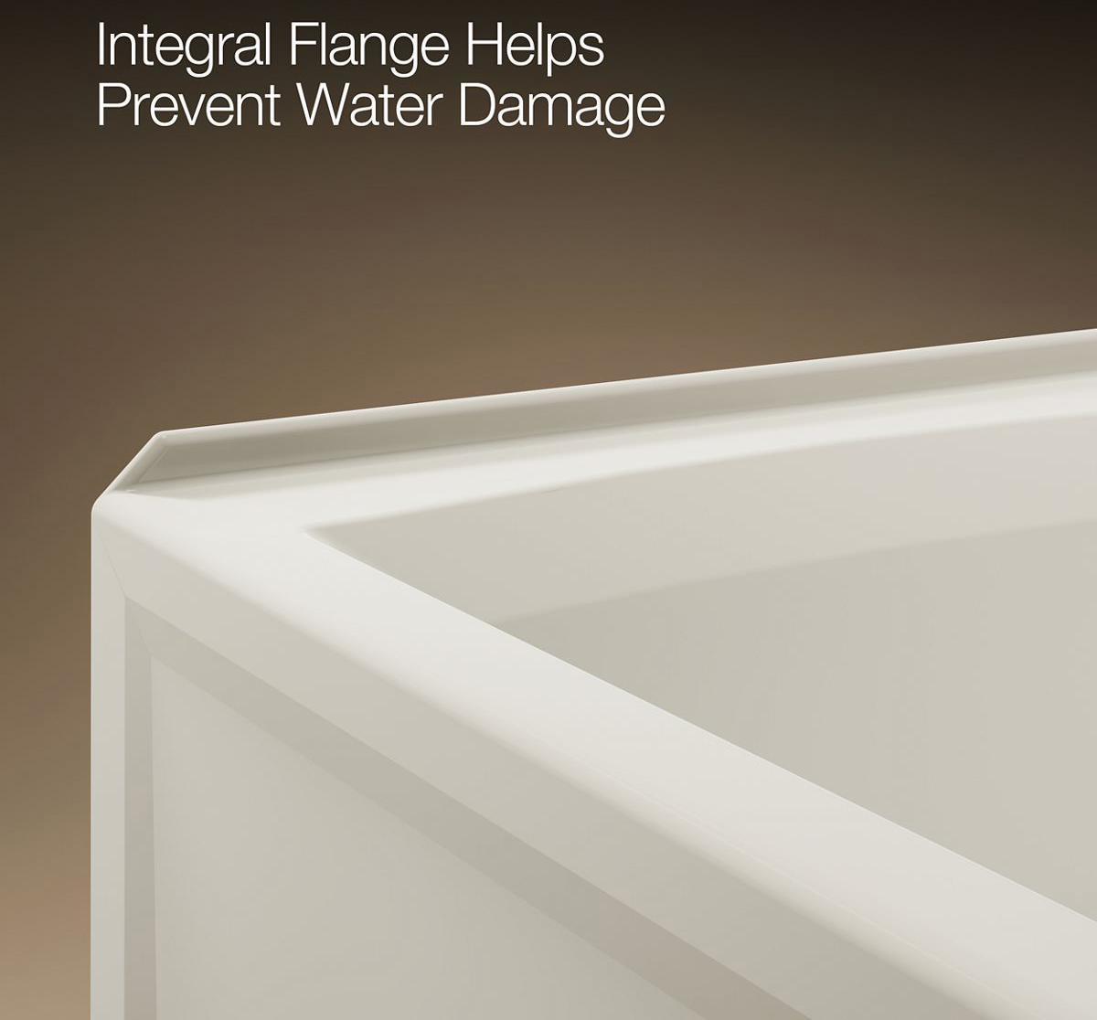 - Integral flange helps prevent water from seeping behind wall and simplifies alcove installation.