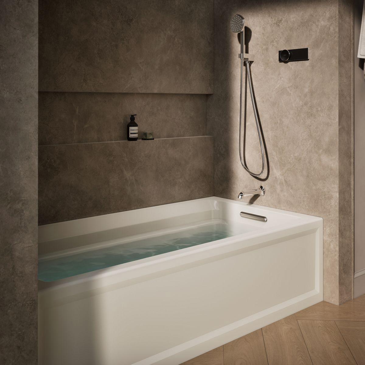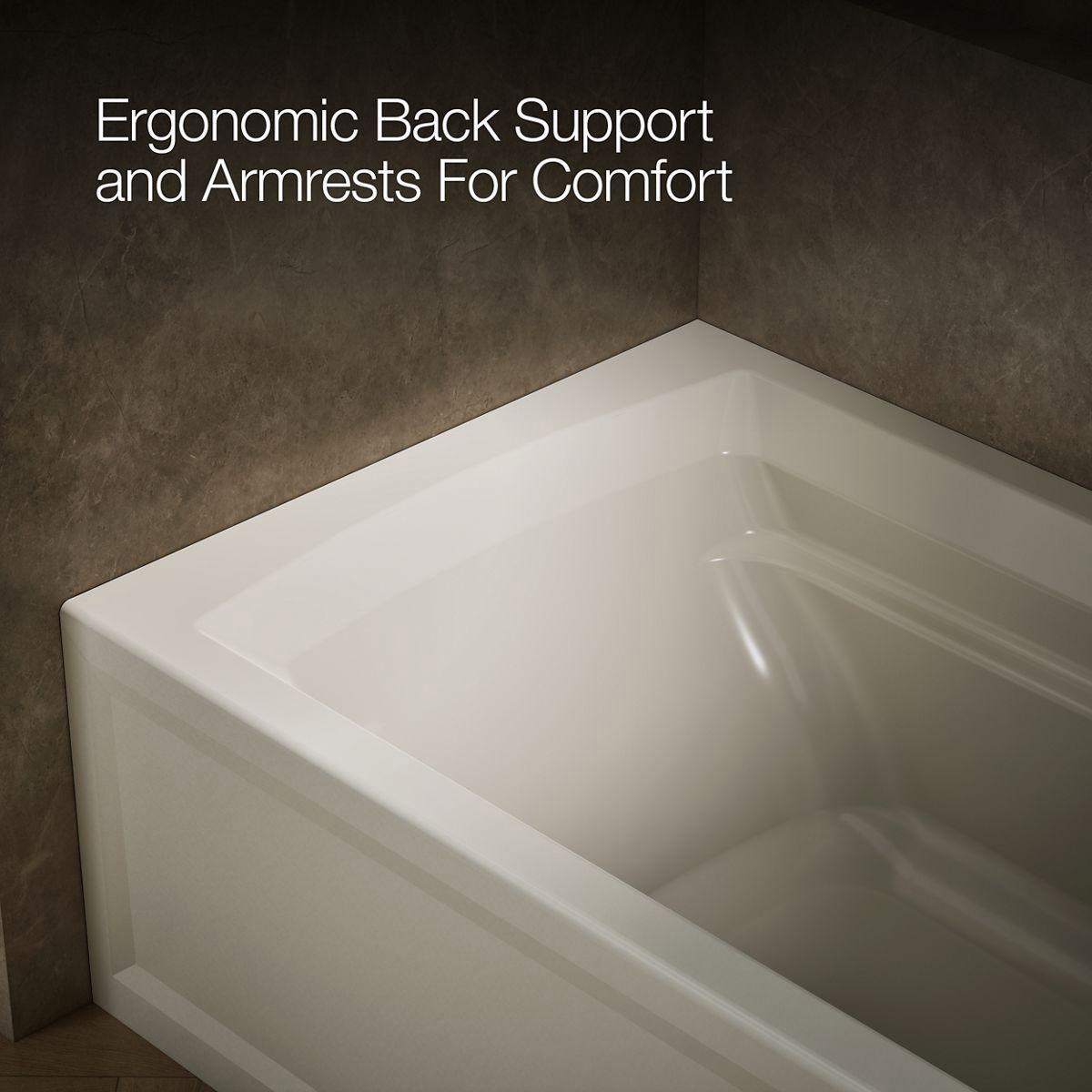 Taking its design cues from traditional Craftsman furniture, the Archer line of baths reveals beveled edges and curved bases for a clean, sophisticated style. This bath offers a low step-over height while allowing for deep, comfortable soaking. Lumbar arch gently support the natural curves of your body.