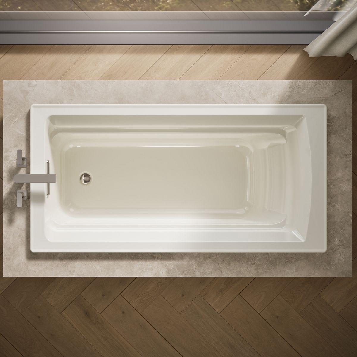Taking its design cues from traditional Craftsman furniture, the Archer line of baths reveals beveled edges and curved bases for a clean, sophisticated style. This bath offers a low step-over height while allowing for deep, comfortable soaking. Lumbar arch gently support the natural curves of your body.
