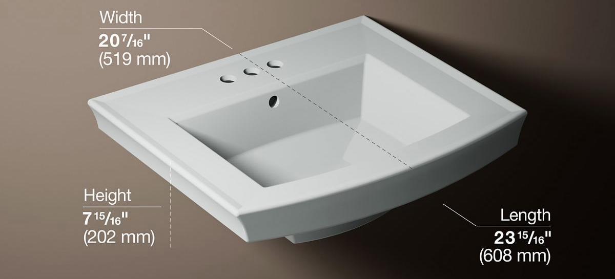 - Combines with the K-2357 pedestal to create the K-2359-4 Archer pedestal sink.