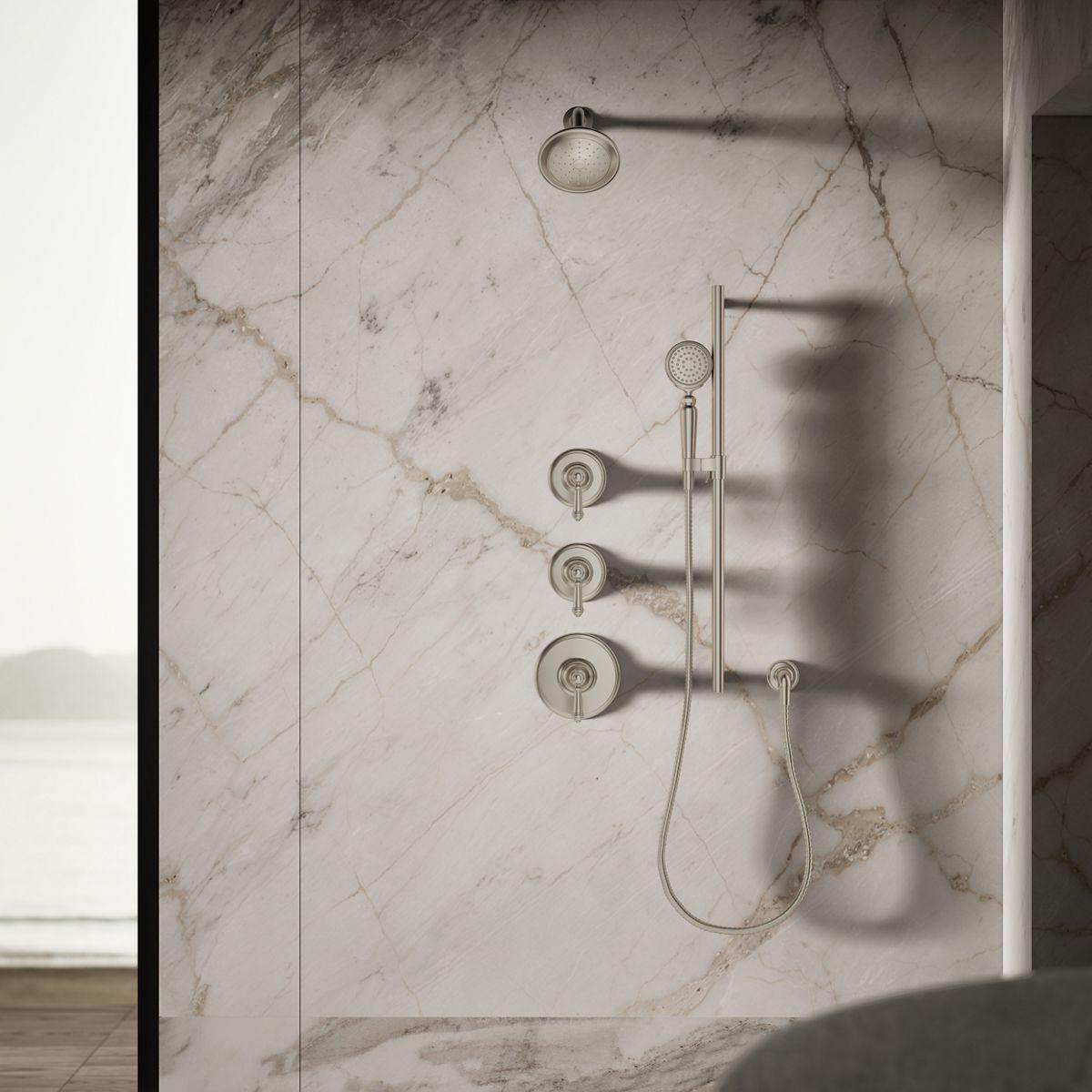 Create a look all your own with the Artifacts collection. Timeless and classic in its inspiration, Artifacts allows you to coordinate faucets, accessories, showering, and finishes to express your personal style. This Artifacts showerhead features Katalyst, a cutting-edge technology that intensifies the flow of water for a completely indulgent showering experience. With a new nozzle pattern, internal waterway design, and air-induction system, this technology maximizes every water drop and creates a richer, more intense flow of water that heightens the shower's sensory experience. By infusing two liters of air per minute, Katalyst delivers a powerful, voluptuous spray that clings to the body with larger, fuller water drops.