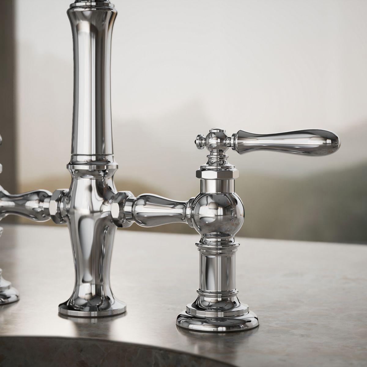 - Two lever handles offer separate control of hot and cold water.