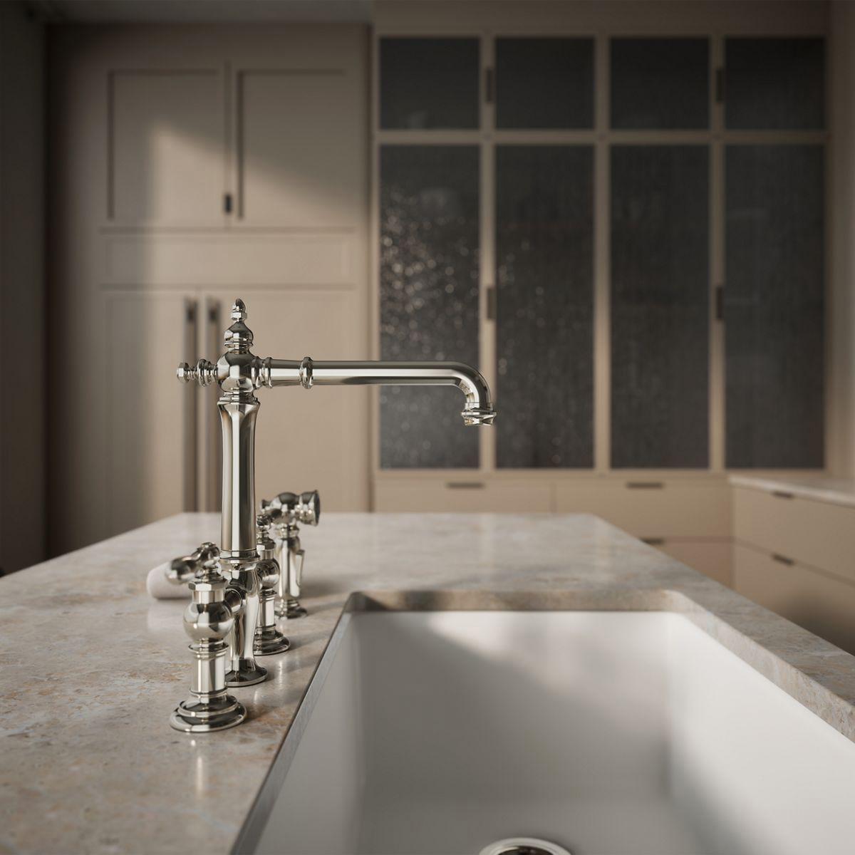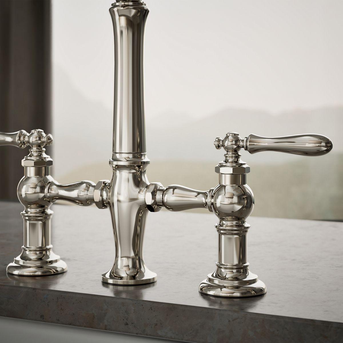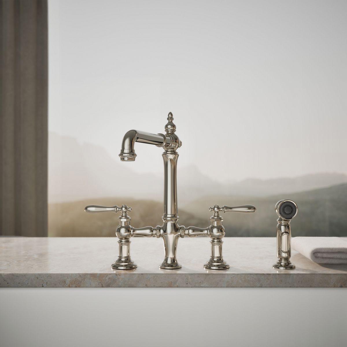 Artifacts 2-Hole Bridge Kitchen Faucet with Side Spray - Vibrant Polished Nickel 76519-4-SN Kohler