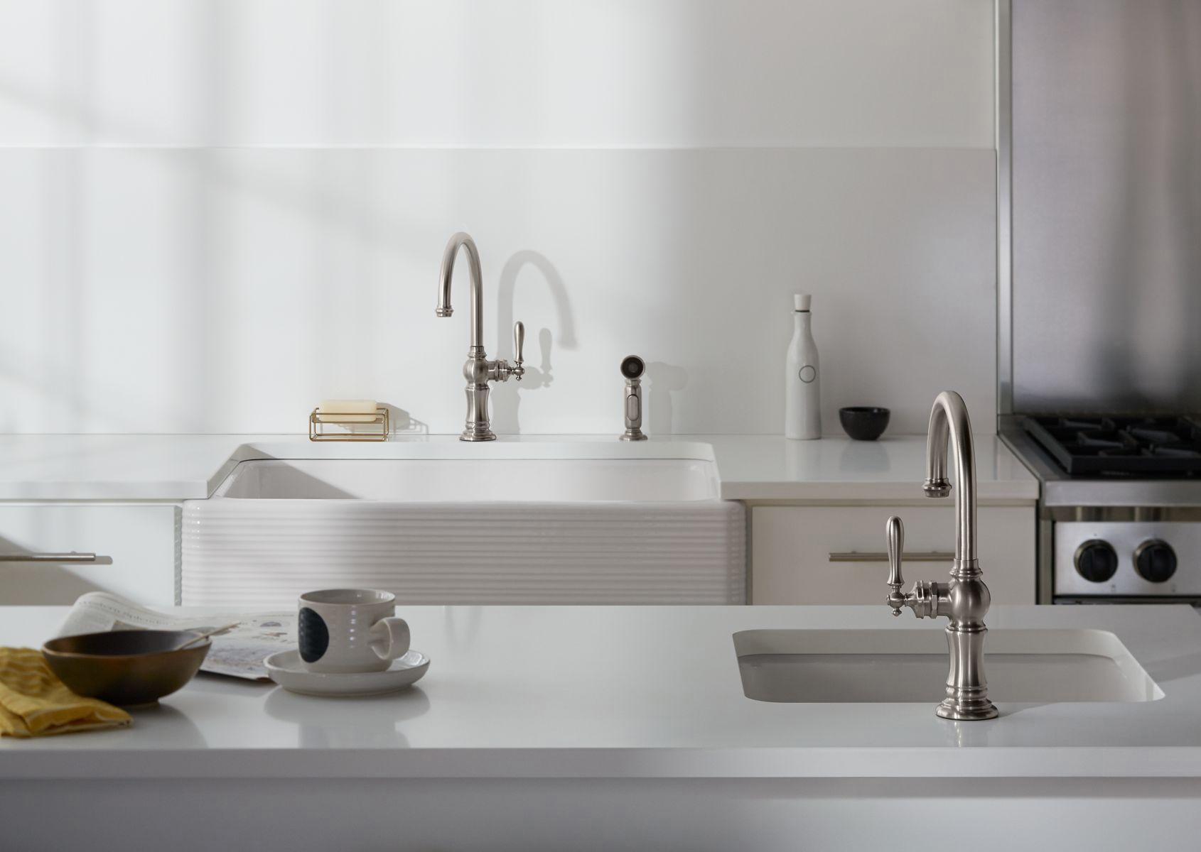 Artifacts 2-Hole Kitchen Faucet with Separate 2-Function Spray - Vibrant Brushed Bronze 99262-BV Kohler