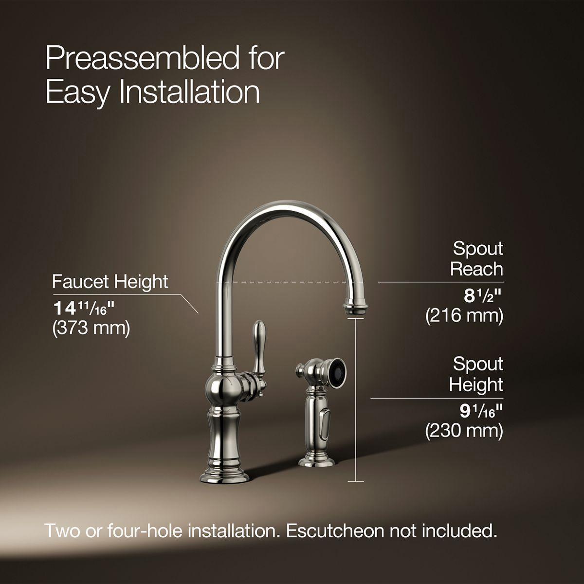 Artifacts 2-Hole Kitchen Faucet with Separate 2-Function Spray - Vibrant Polished Nickel 99262-SN Kohler