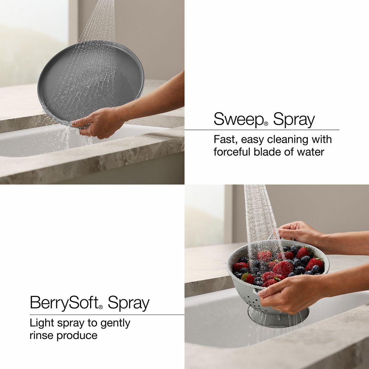 - Matching two-function side sprayer featuring Sweep® Spray and BerrySoft® provides convenience for cleaning and food prep