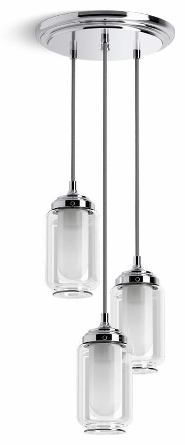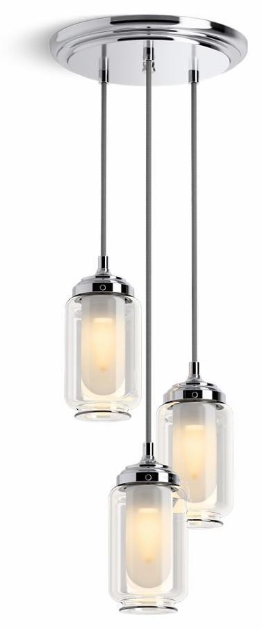 - Versatile design that features a frosted shade surrounded by a clear glass shade.