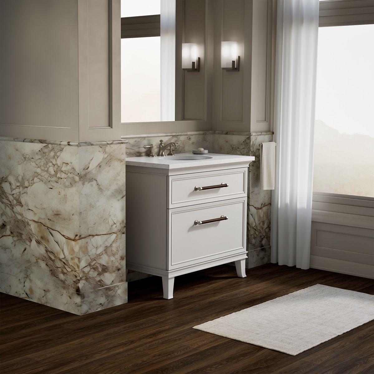 - Combines with Silestone® prefabricated quartz vanity tops, backsplashes, and side splashes, and KOHLER sinks (sold separately)