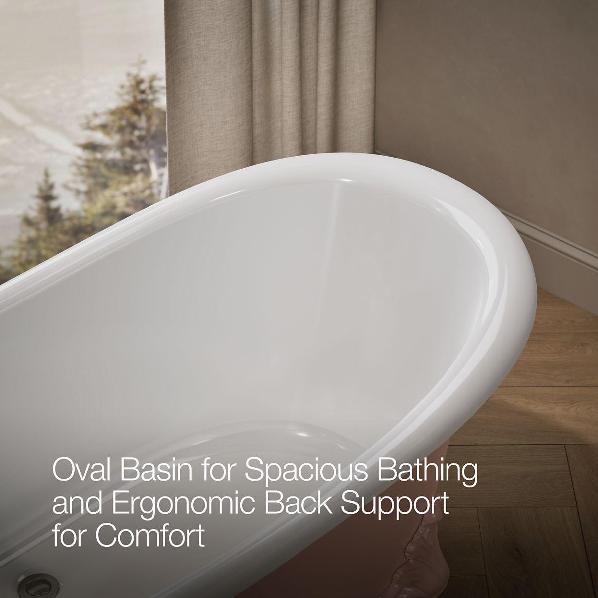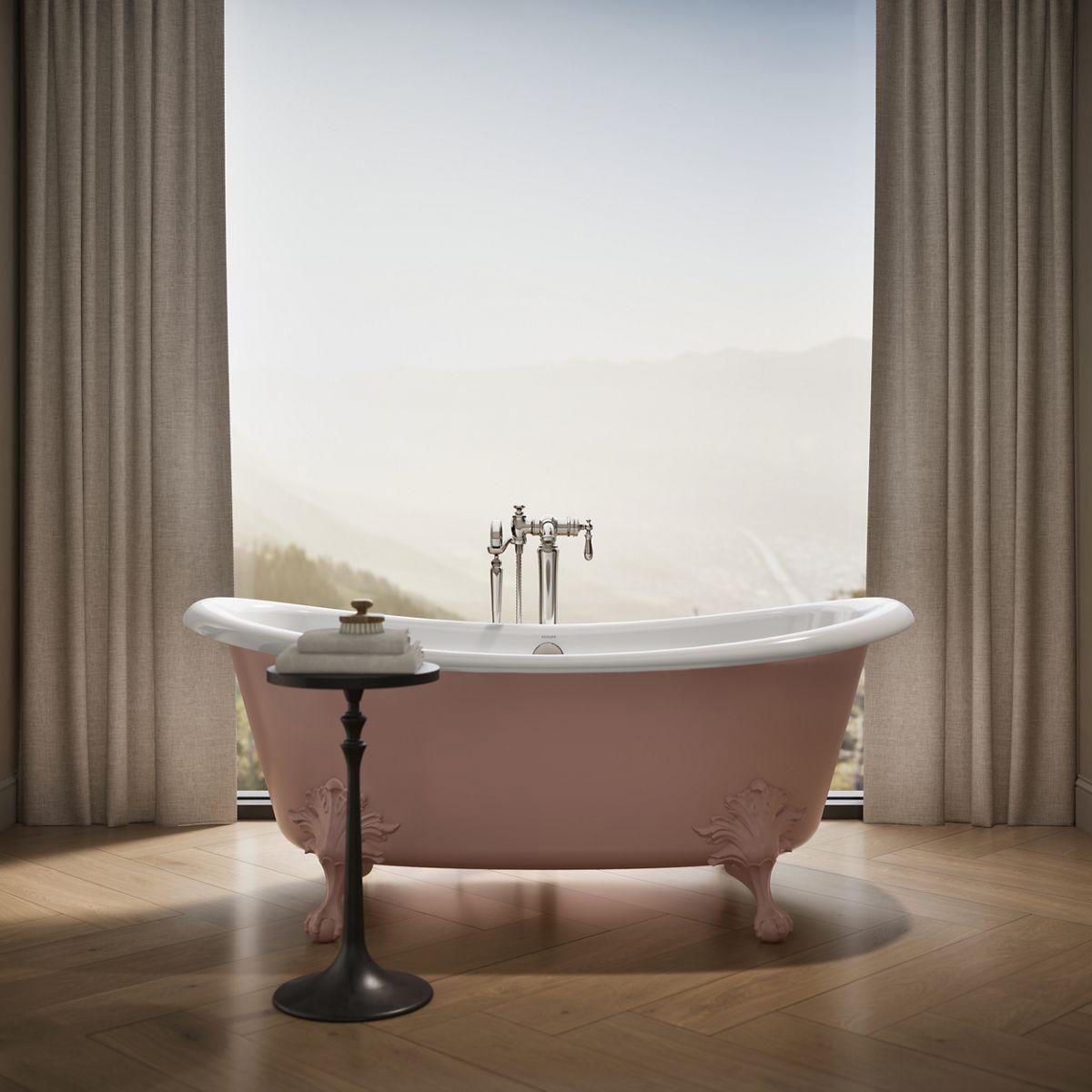 Inspired by the charm of turn-of-the-century homes, an Artifacts freestanding bath is like a vintage treasure rediscovered, enhanced by the comforts of modern design. The rim's gentle curve offers added neck support while the center's lower height allows for easy access in and out of the bath. The smooth enameled interior is complemented by a Peachblow painted finish on the exterior. Customize your Artifacts bath with ball-and-claw feet available in complementing colors. Safeguard slip-resistant surface enhances safety.