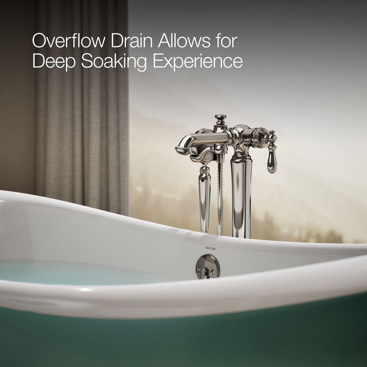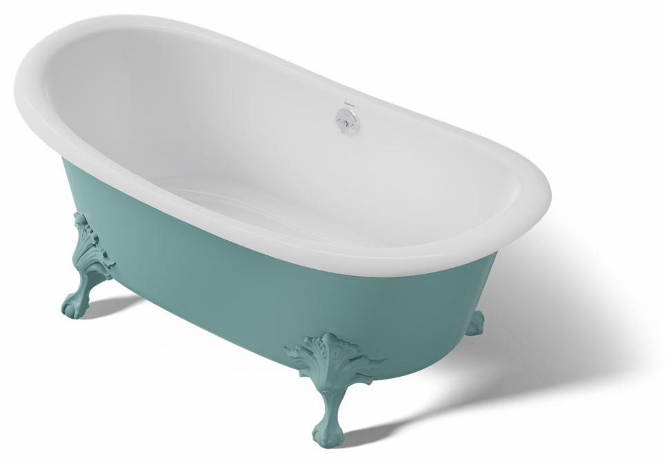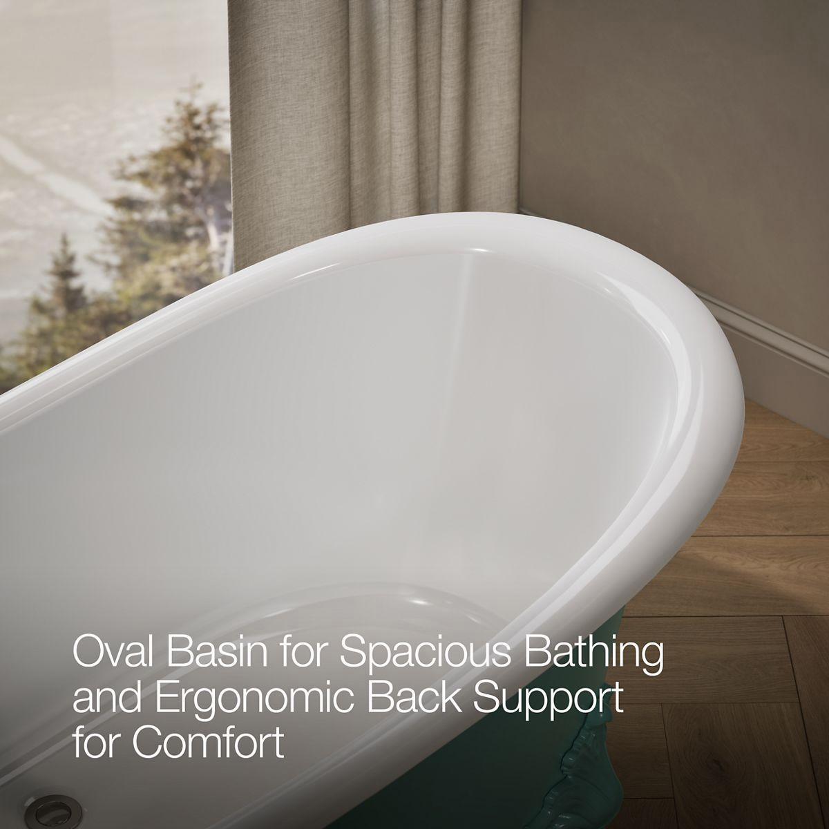 Inspired by the charm of turn-of-the-century homes, an Artifacts freestanding bath is like a vintage treasure rediscovered, enhanced by the comforts of modern design. The rim's gentle curve offers added neck support while the center's lower height allows for easy access in and out of the bath. The smooth enameled interior is complemented by a Spring Green painted finish on the exterior. Customize your Artifacts bath with ball-and-claw feet available in complementing colors. Safeguard slip-resistant surface enhances safety.