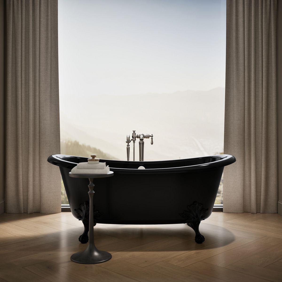 Inspired by the charm of turn-of-the-century homes, an Artifacts freestanding bath is like a vintage treasure rediscovered – enhanced by the comforts of modern design. The gentle curve in the rim shape offers added neck support while keeping the center at a lower height for easy access in and out of the bath. The smooth enameled interior is complemented by an Iron Black painted finish on the exterior. Customize your Artifacts bath with a pedestal base or ball-and-claw feet. Safeguard slip-resistant surface enhances safety.