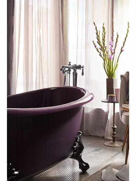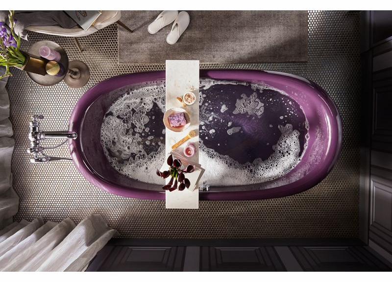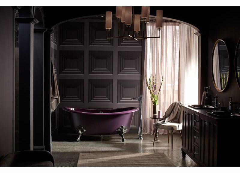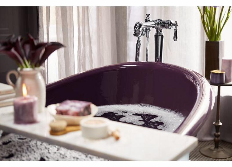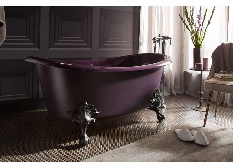 Inspired by the charm of turn-of-the-century homes, an Artifacts freestanding bath is like a vintage treasure rediscovered—enhanced by the comforts of modern design. The gentle curve in the rim shape offers added neck support while keeping the center at a lower height for easy access in and out of the bath. Part of the KOHLER Shadows color collection, this bath features a smooth enameled interior and matching painted exterior in Black Plum. Customize your Artifacts bath with a pedestal base or ball-and-claw feet. Safeguard slip-resistant surface enhances safety.