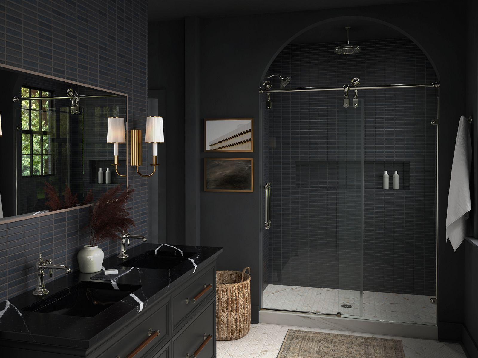 Add the final touch to your showering space with the luxurious, frameless Artifacts sliding shower door. This traditional design includes exposed rollers engineered to glide across a heavy-duty top rail, offering a bold style statement and smooth operation. The door stands 80-7/8 tall for ample walk-through clearance and features elegant Victorian-inspired back-to-back handles for easy entry and exit. This shower door includes heavy 3/8-thick tempered glass and simple installation with out-of-plumb adjustability on both the fixed and sliding glass panels. Available in many finishes that match Artifacts bathroom faucets and accessories, you will create an environment to behold.
