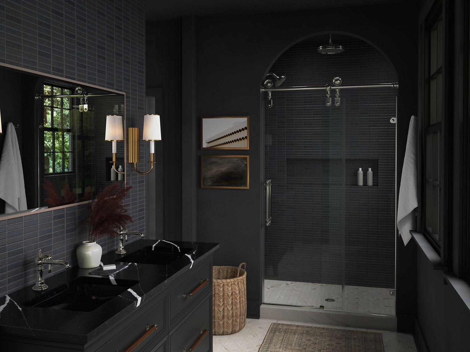Add the final touch to your showering space with the luxurious, frameless Artifacts sliding shower door. This traditional design includes exposed rollers engineered to glide across a heavy-duty top rail, offering a bold style statement and smooth operation. The door stands 80-7/8 tall for ample walk-through clearance and features elegant Victorian-inspired back-to-back handles for easy entry and exit. This shower door includes heavy 3/8-thick tempered glass and simple installation with out-of-plumb adjustability on both the fixed and sliding glass panels. Available in many finishes that match Artifacts bathroom faucets and accessories, you will create an environment to behold.