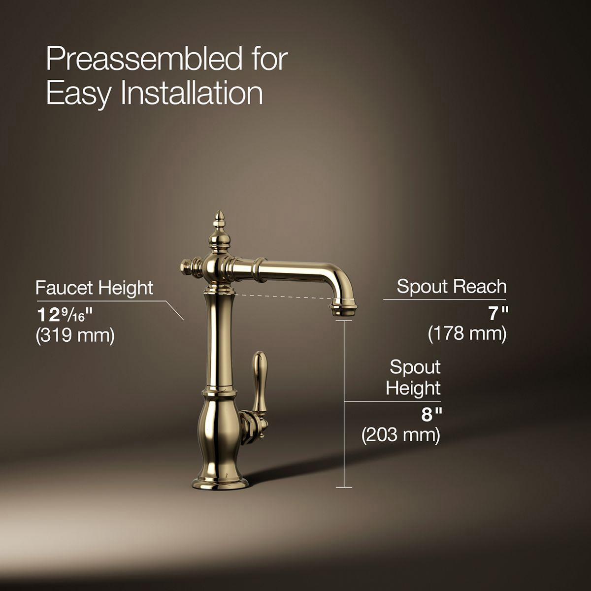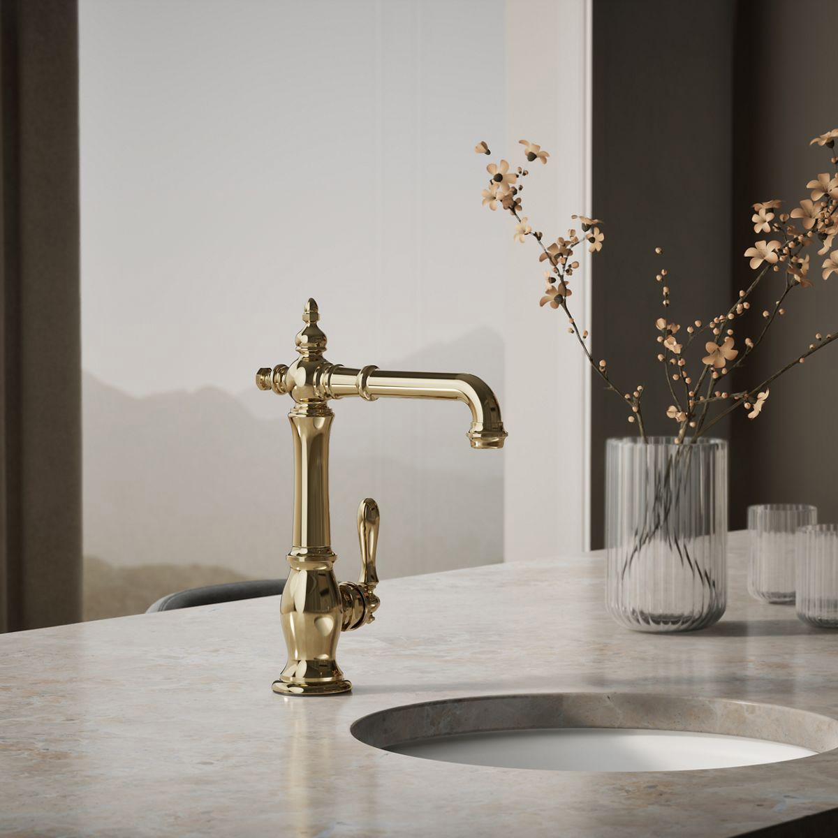 The Artifacts faucet collection brings you classic designs reimagined in fresh new ways for various task areas of the kitchen. This Victorian-inspired bar sink faucet features an elegant column design with convenient swing spout.