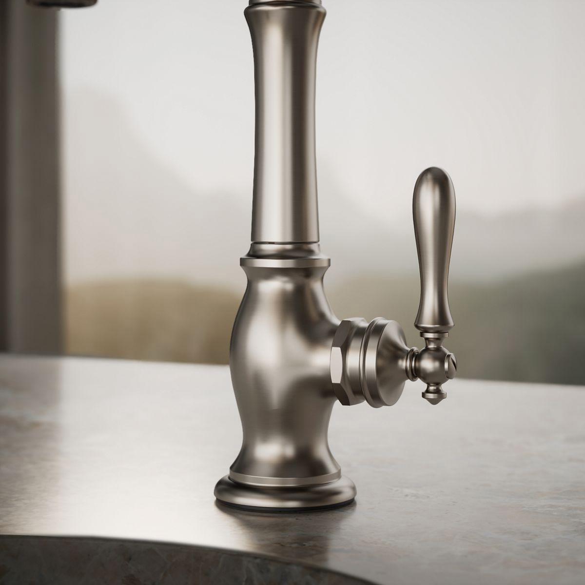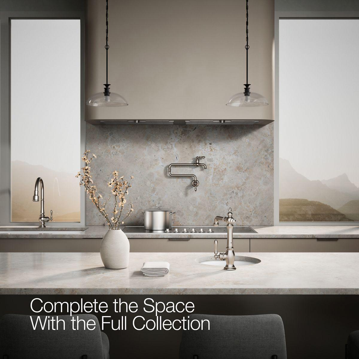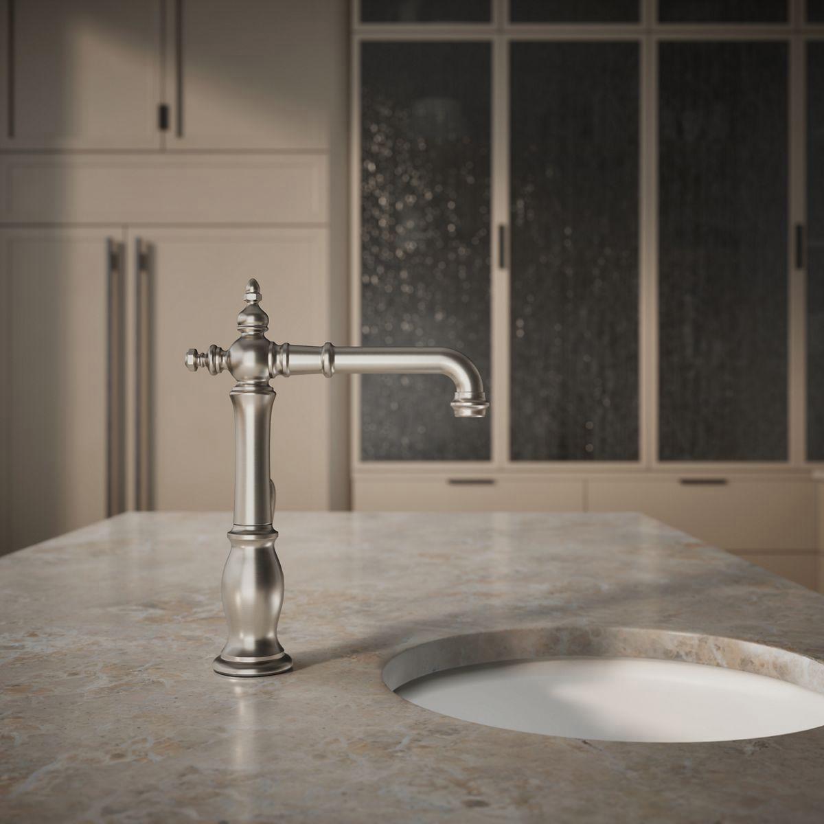 The Artifacts faucet collection brings you classic designs reimagined in fresh new ways for various task areas of the kitchen. This Victorian-inspired bar sink faucet features an elegant column design with convenient swing spout.