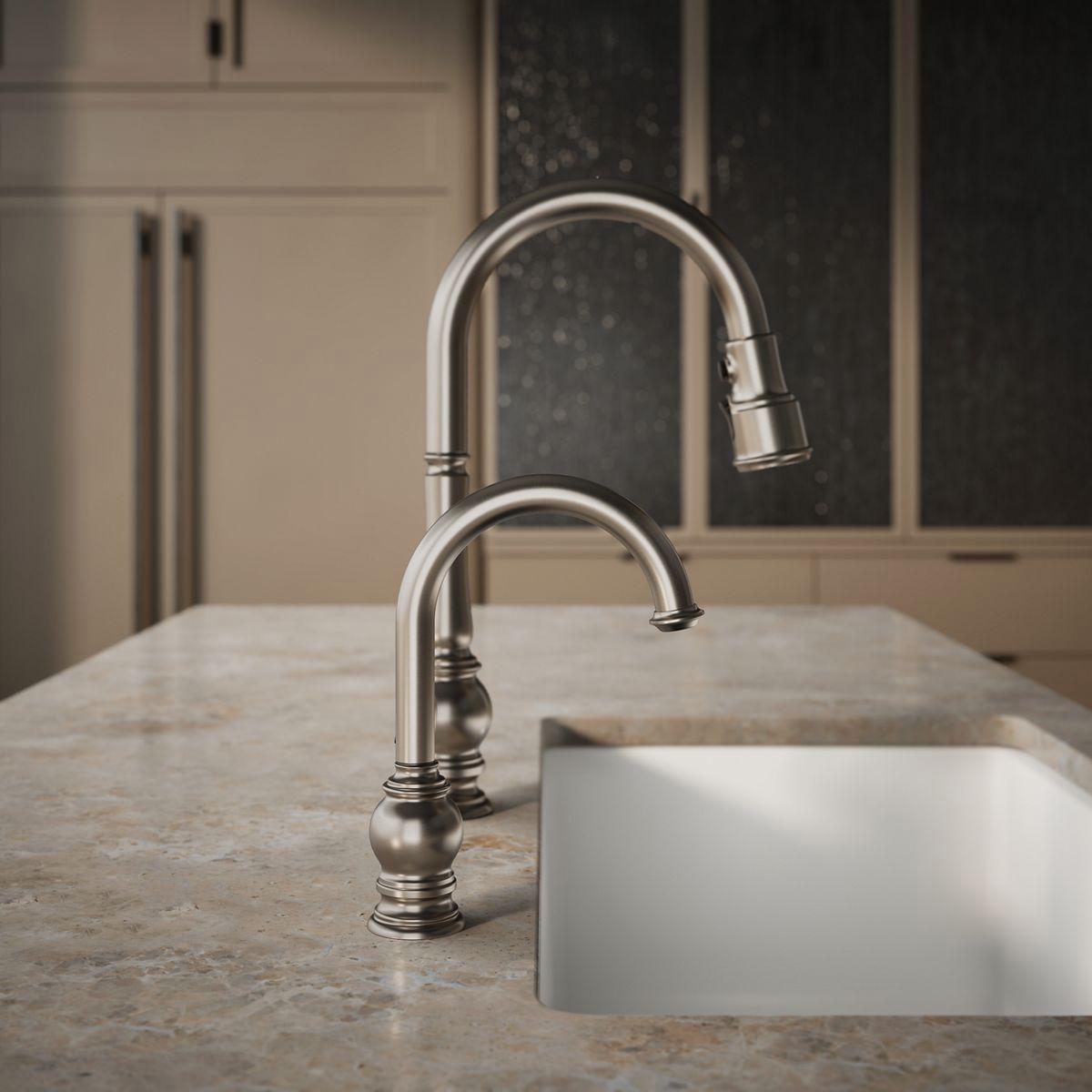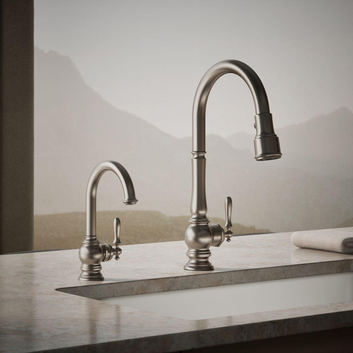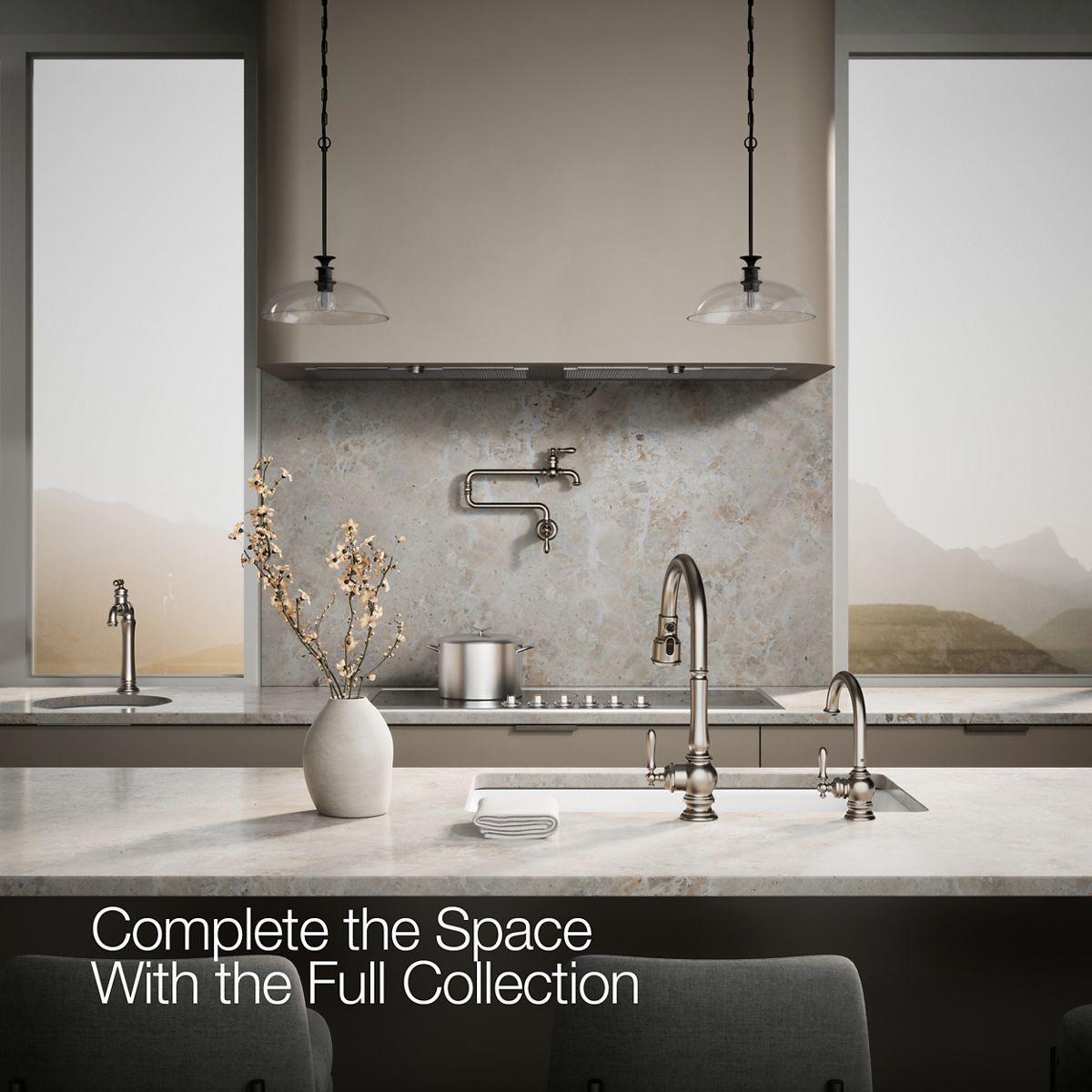 With a traditional design and color finishes uniquely harmonized to the Artifacts kitchen faucet collection, this Artifactsbeverage faucet adds convenience and style to your kitchen. A swing spout makes filling large pitchers a breeze, while a ceramic valve gives you precise control over water flow to prevent splashing. Pair this Artifactsfaucet with a bar/prep sink and an undercounter water filter or chiller for easy access to pure, refreshing drinking water.