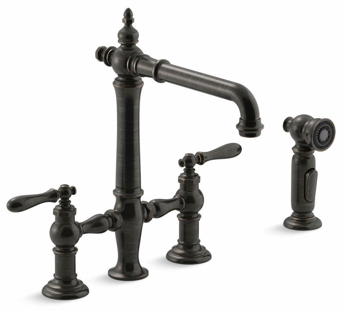 Artifacts Bridge Kitchen Faucet with Side Spray - Oil-Rubbed Bronze 76519-4-2BZ Kohler