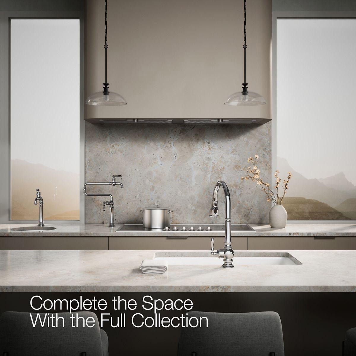The Artifacts faucet collection brings you classic designs reimagined in fresh new ways for various task areas of the kitchen. Inspired by vintage spigots and classic soda fountains, the Artifacts Gentleman's bar faucet makes a stylish statement in any kitchen or entertainment area.