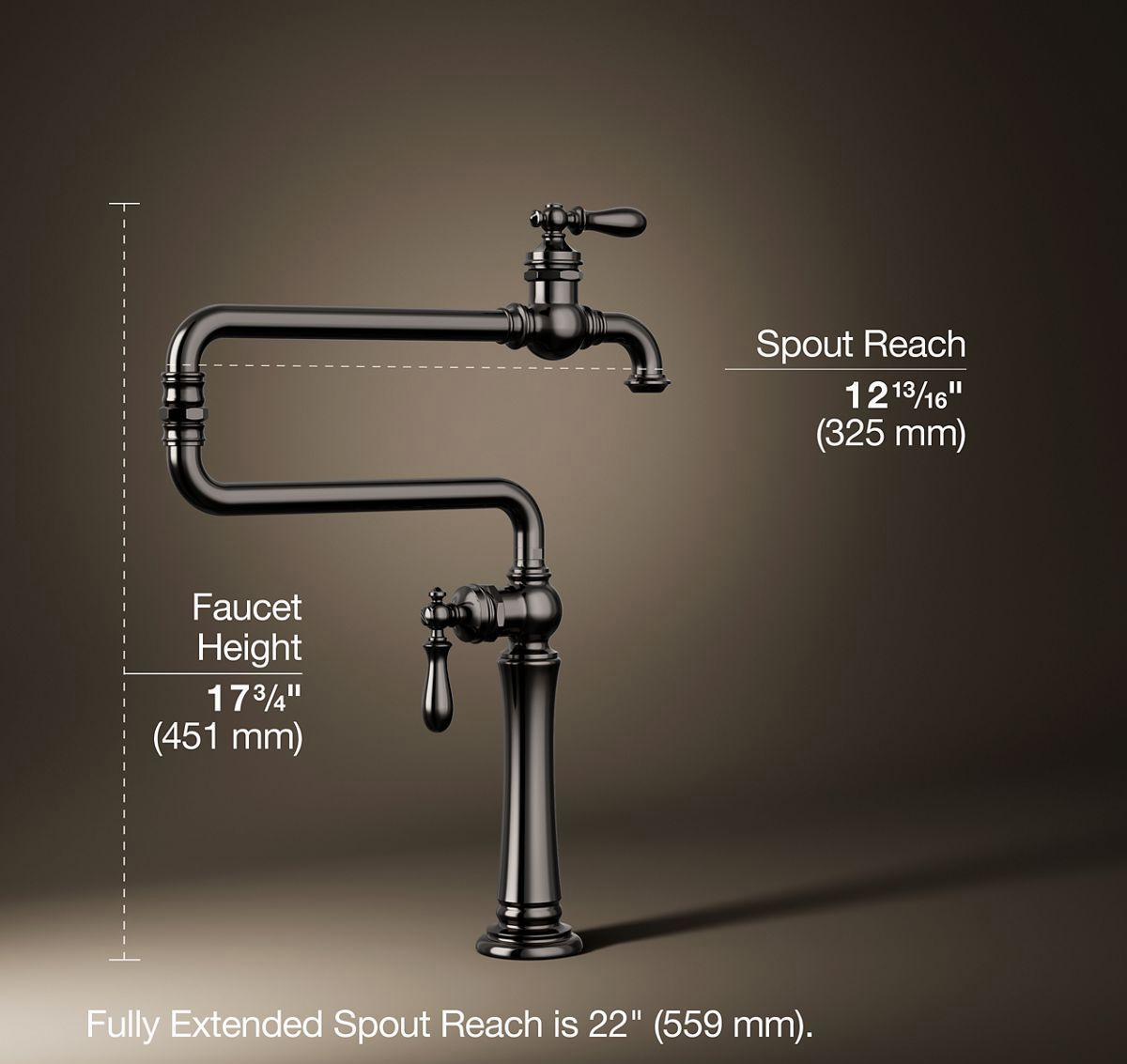 - Articulating spout with 360° rotation offers superior clearance for filling pots on cooktops and ranges