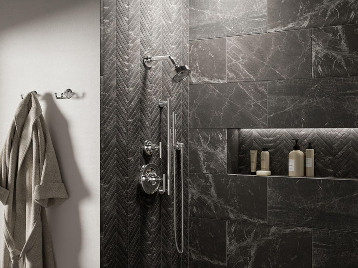 Create a look all your own with the Artifactscollection. Timeless and classic in its inspiration, Artifactsallows you to coordinate faucets, accessories, showering, and finishes to express your personal style. This double robe hook combines quality craftsmanship with a vintage artisan design to lend character and authenticity to your space.