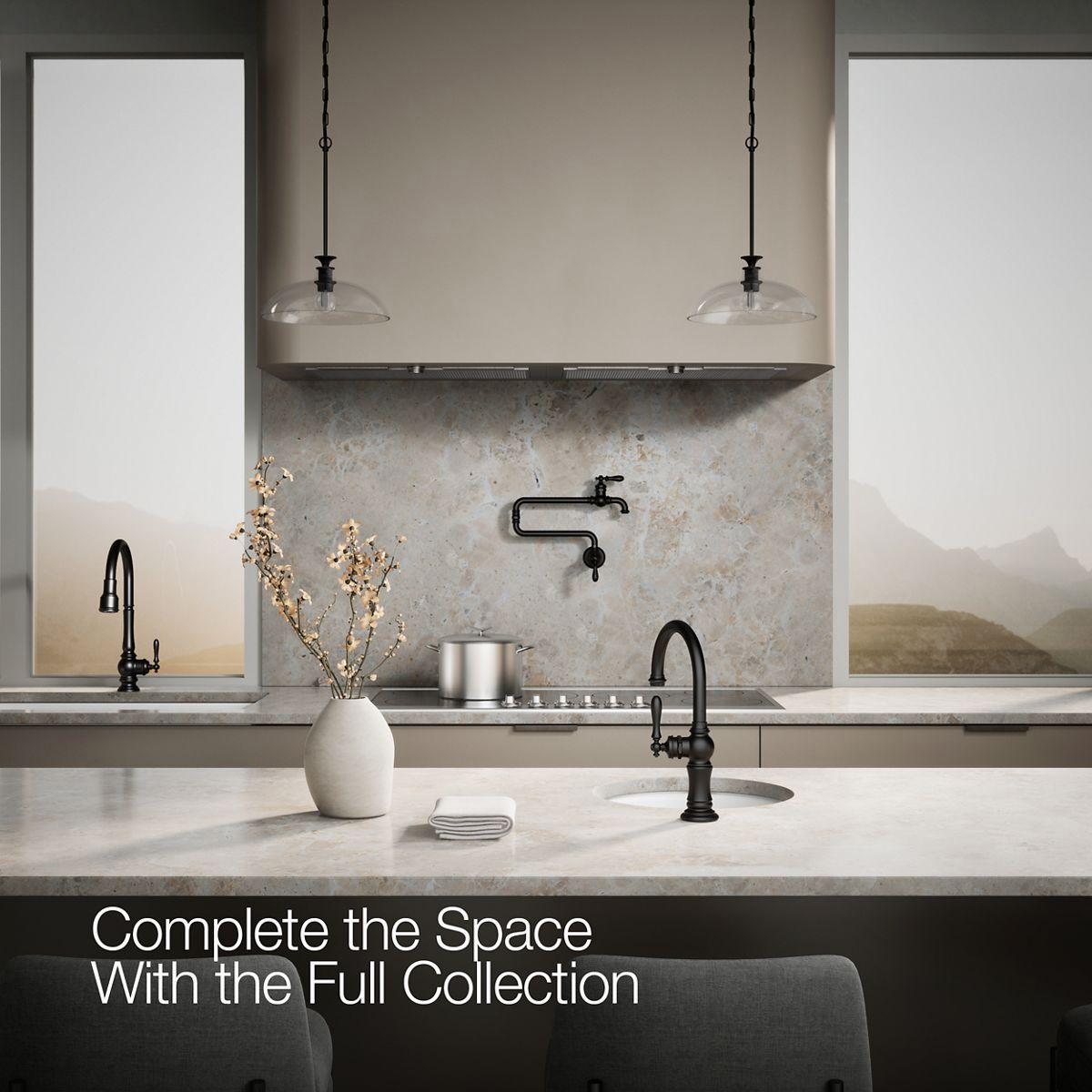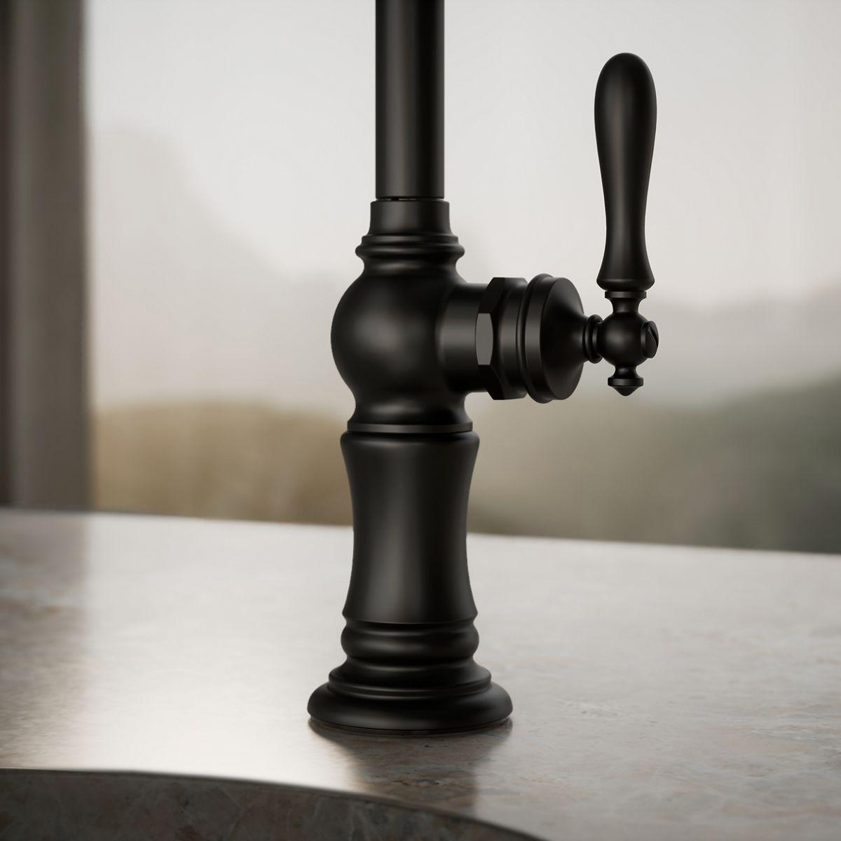 The Artifacts faucet collection brings you classic designs reimagined in fresh new ways for various task areas of the kitchen. This Artifacts bar sink faucet displays vintage style with its high-arch swing spout and turned lever handle.