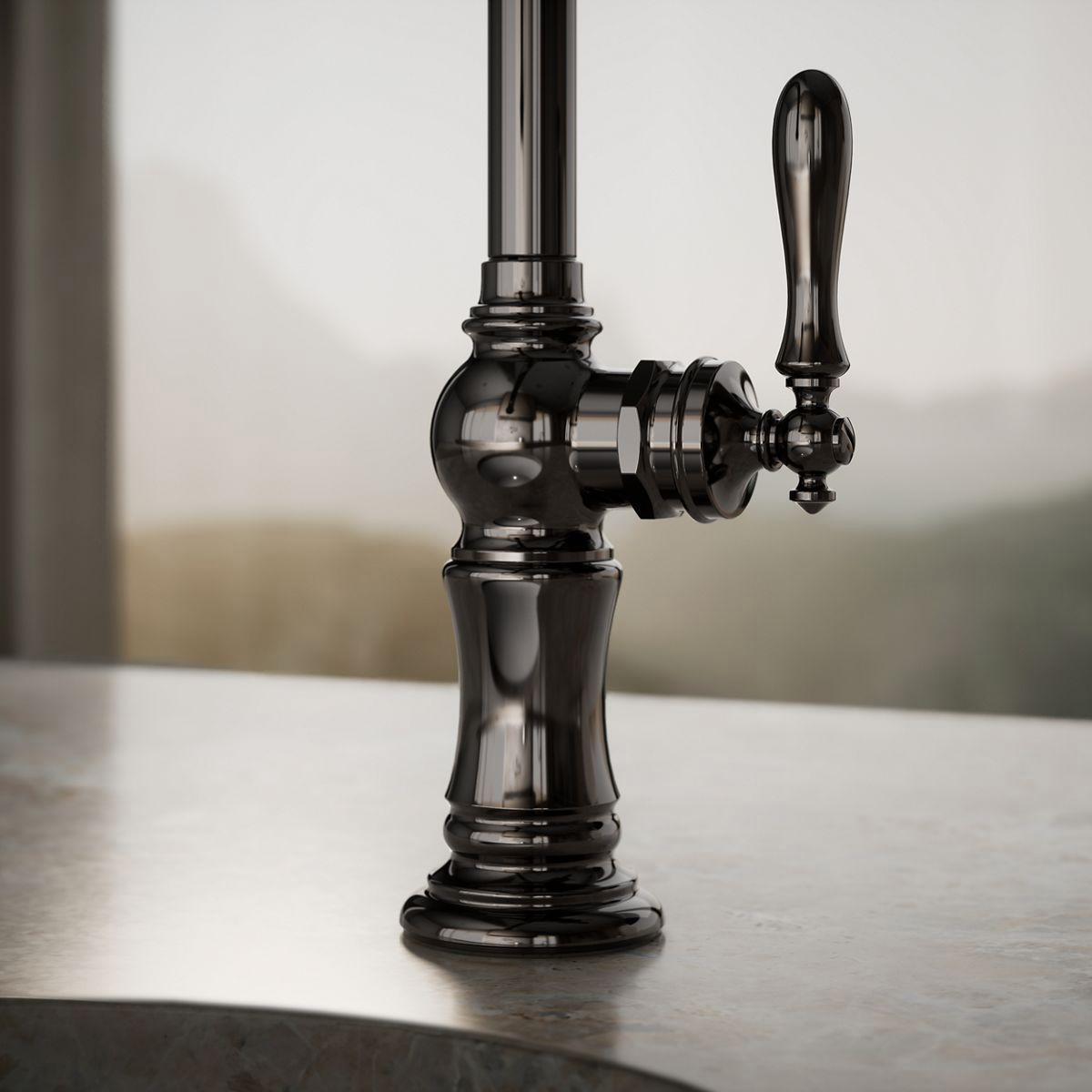 The Artifacts faucet collection brings you classic designs reimagined in fresh new ways for various task areas of the kitchen. This Artifacts bar sink faucet displays vintage style with its high-arch swing spout and turned lever handle.