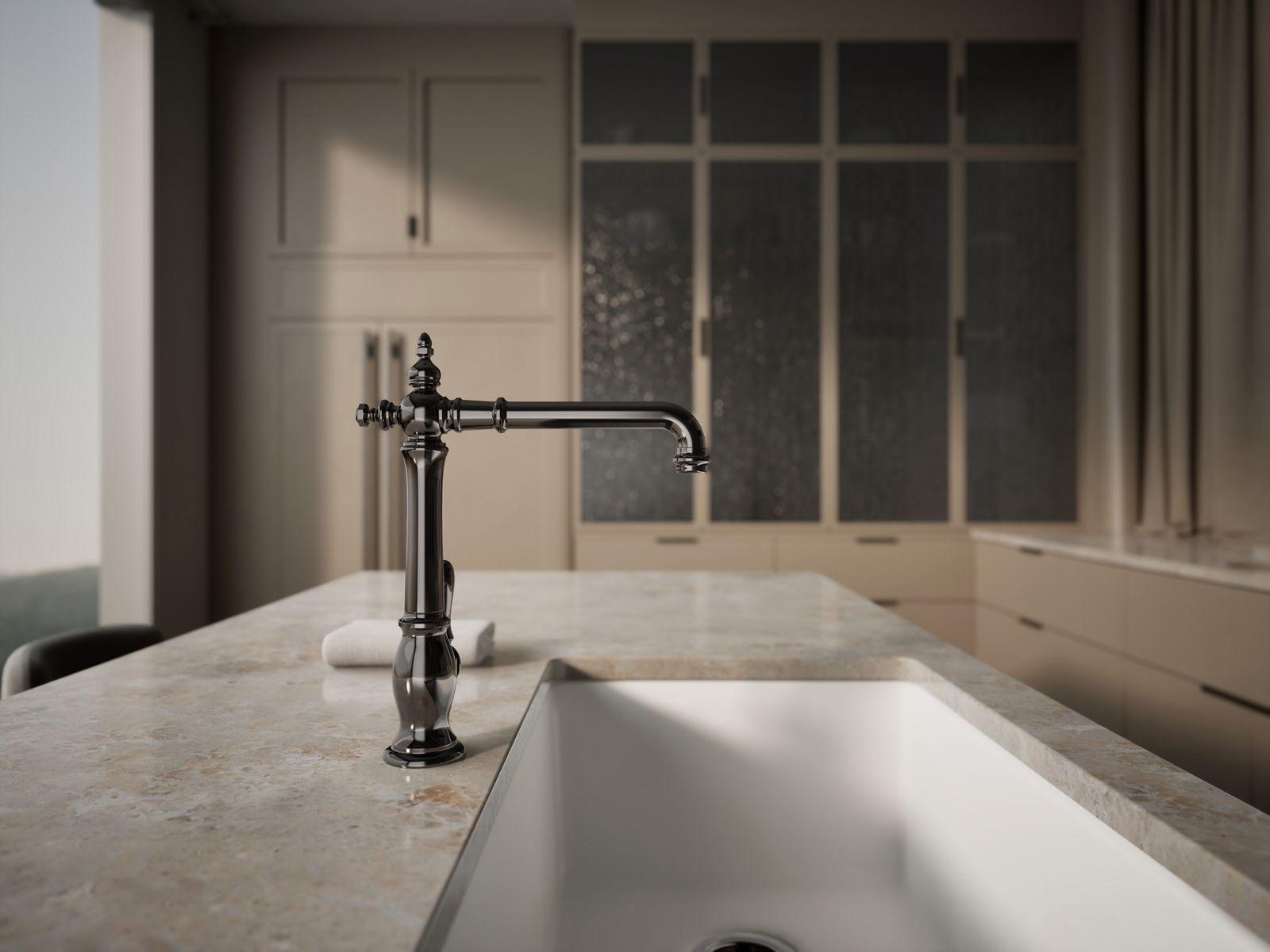 The Artifacts faucet collection brings you classic designs reimagined in fresh new ways for various task areas of the kitchen. This Victorian-inspired kitchen sink faucet features an elegant column design with convenient swing spout.
