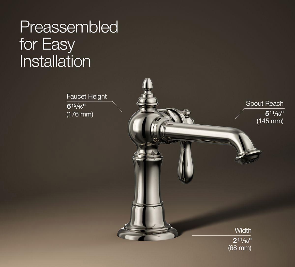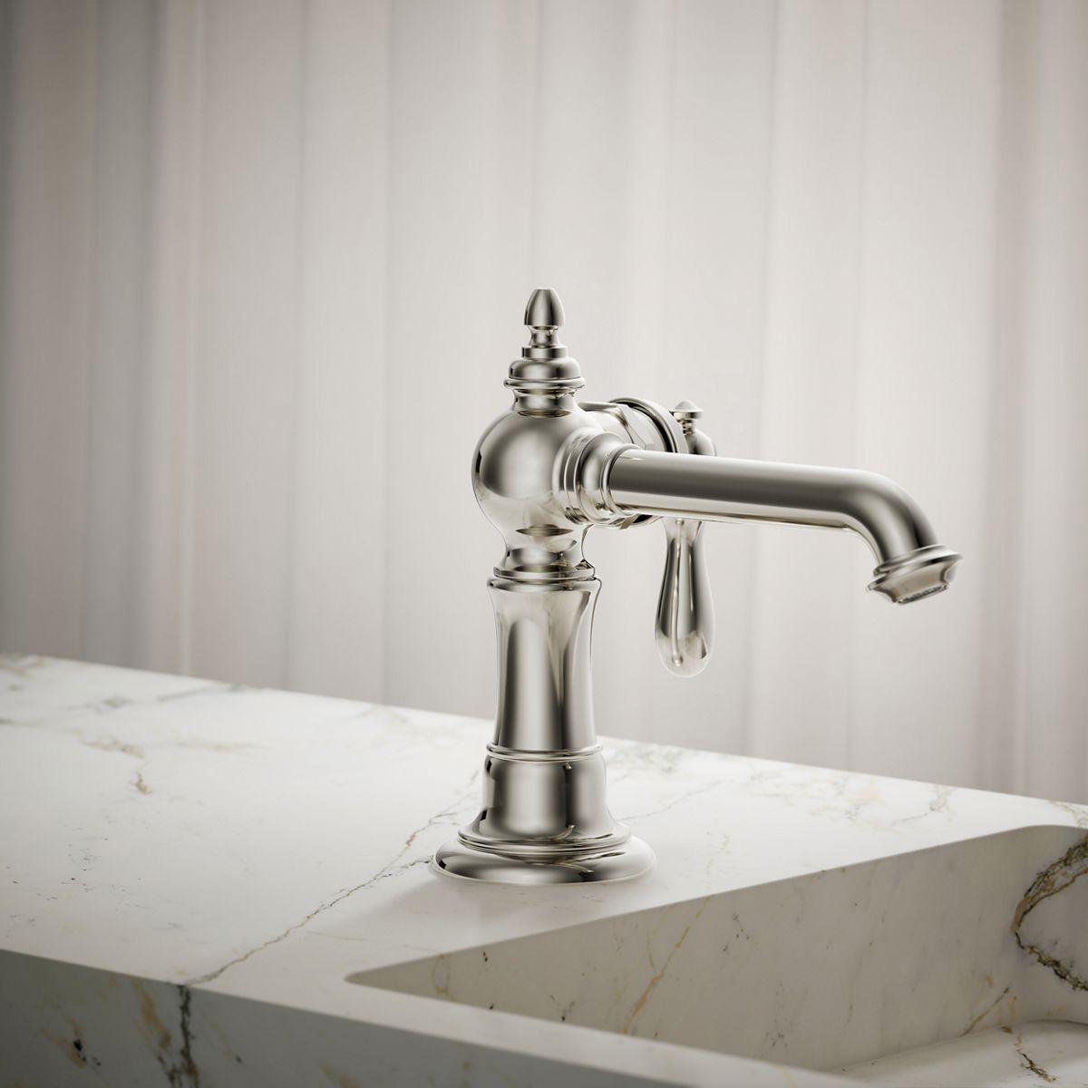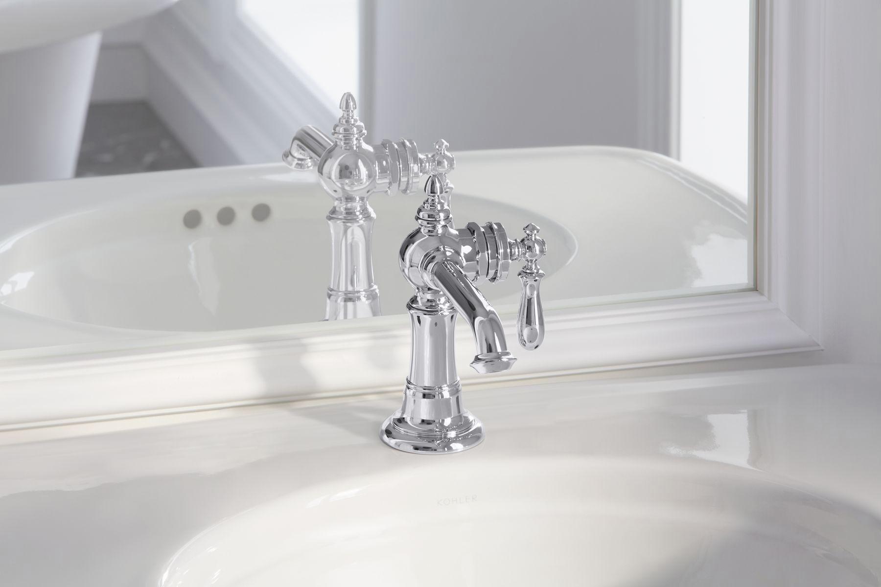 Create a look all your own with the Artifactscollection. Timeless and classic in its inspiration, Artifactsallows you to coordinate faucets, accessories, showering, and finishes to express your personal style. Artifactsfaucets combine quality craftsmanship with artisan designs to lend character and authenticity to your space - as a finishing touch or the central piece to build the room around. This bathroom sink faucet features a single lever handle for simple water temperature adjustment.