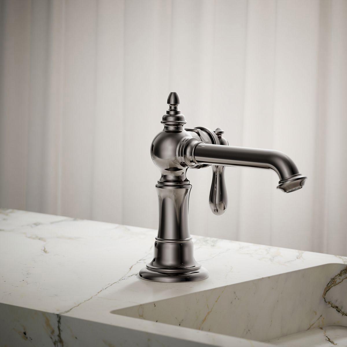 Create a look all your own with the Artifacts collection. Timeless and classic in its inspiration, Artifacts allows you to coordinate faucets, accessories, showering, and finishes to express your personal style. Artifacts faucets combine quality craftsmanship with artisan designs to lend character and authenticity to your space - as a finishing touch or the central piece to build the room around. This bathroom sink faucet features a single lever handle for simple water temperature adjustment.