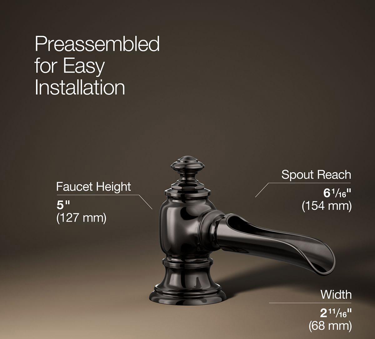 Create a look all your own with the Artifacts collection. Timeless and classic in its inspiration, Artifacts allows you to coordinate faucets, accessories, showering, and finishes to express your personal style. Artifacts faucets combine quality craftsmanship with artisan designs to lend character and authenticity to your space - as a finishing touch or the central piece to build the room around. This vintage-inspired bathroom sink spout has an open flume design that channels water beautifully into a graceful, elegant waterfall.