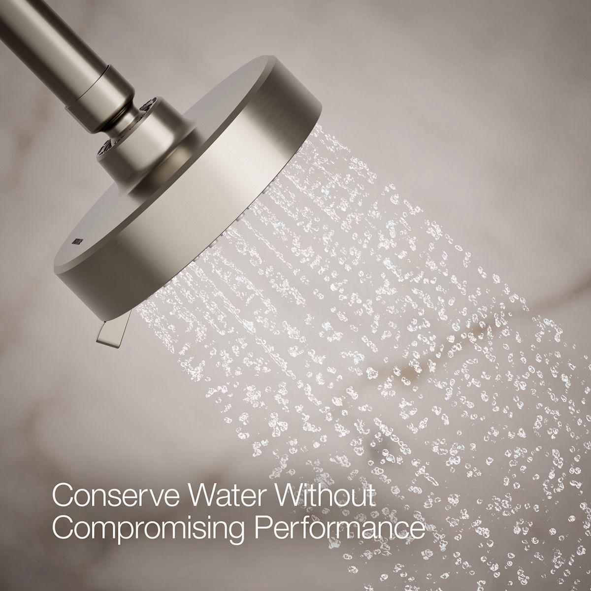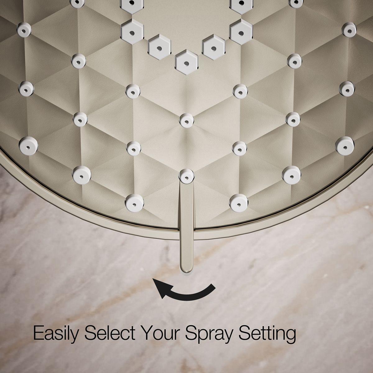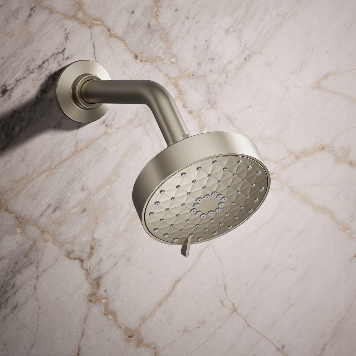 The Awaken 2.5 gpm showerhead brings KOHLER quality, design, and performance to your shower. Advanced spray performance delivers three distinct sprays – wide coverage, intense drenching, and targeted – while an ergonomically designed thumb tab smoothly transitions between sprays with a quick touch. The artfully sculpted sprayface reveals simple, architectural forms that complement contemporary and minimalist baths.