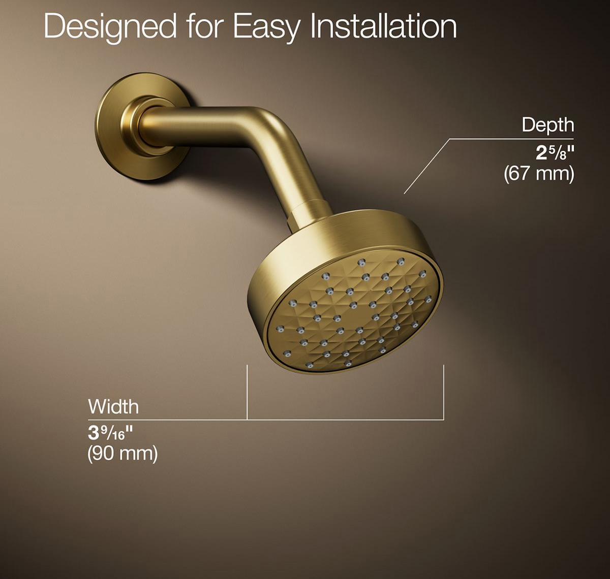 The Awaken showerhead brings KOHLER quality, design, and performance to your bath. An advanced spray engine provides wide coverage and thorough rinsing. The artfully sculpted sprayface reveals simple, architectural forms that complement contemporary and minimalist baths.