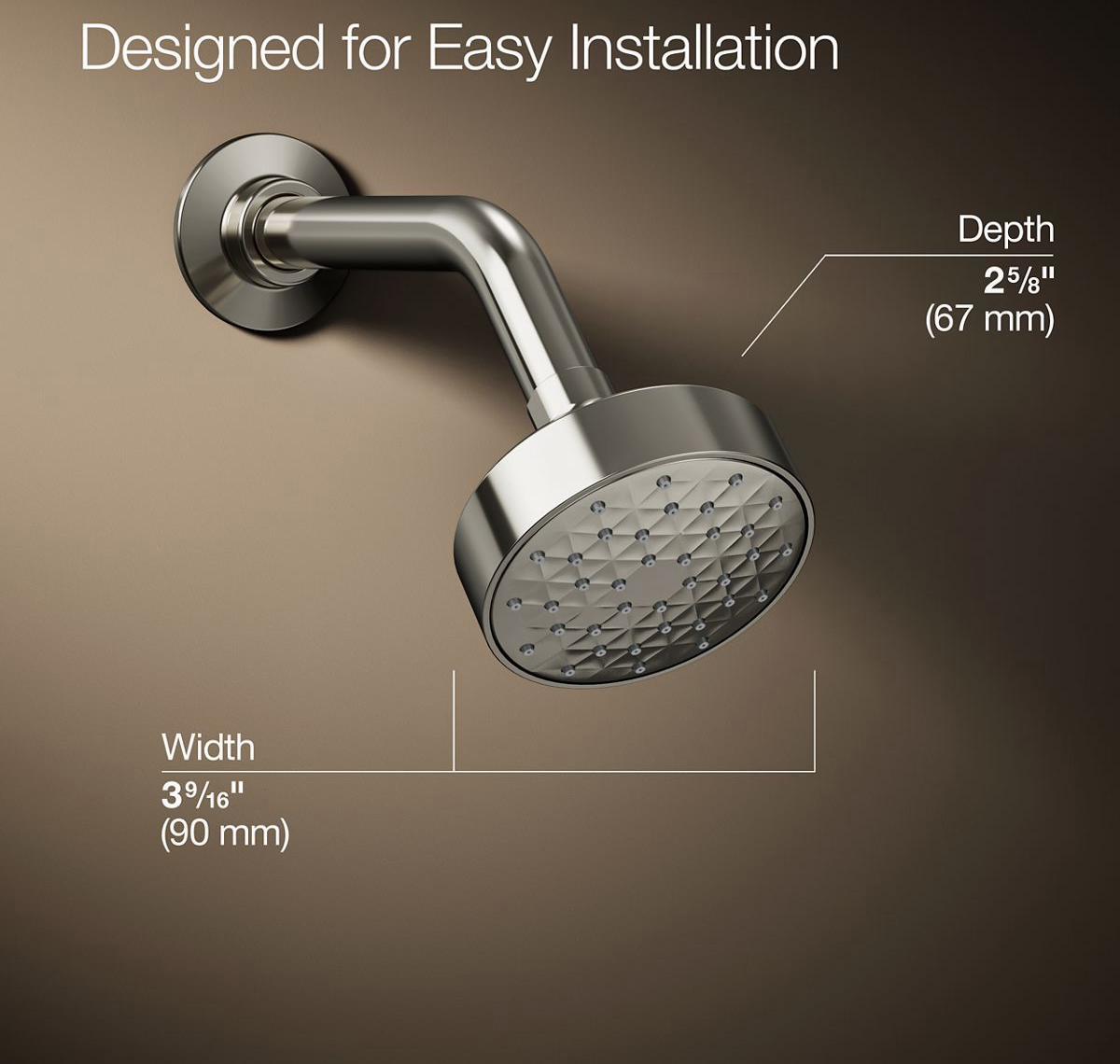 The Awaken showerhead brings KOHLER quality, design, and performance to your bath. An advanced spray engine provides wide coverage and thorough rinsing. The artfully sculpted sprayface reveals simple, architectural forms that complement contemporary and minimalist baths.