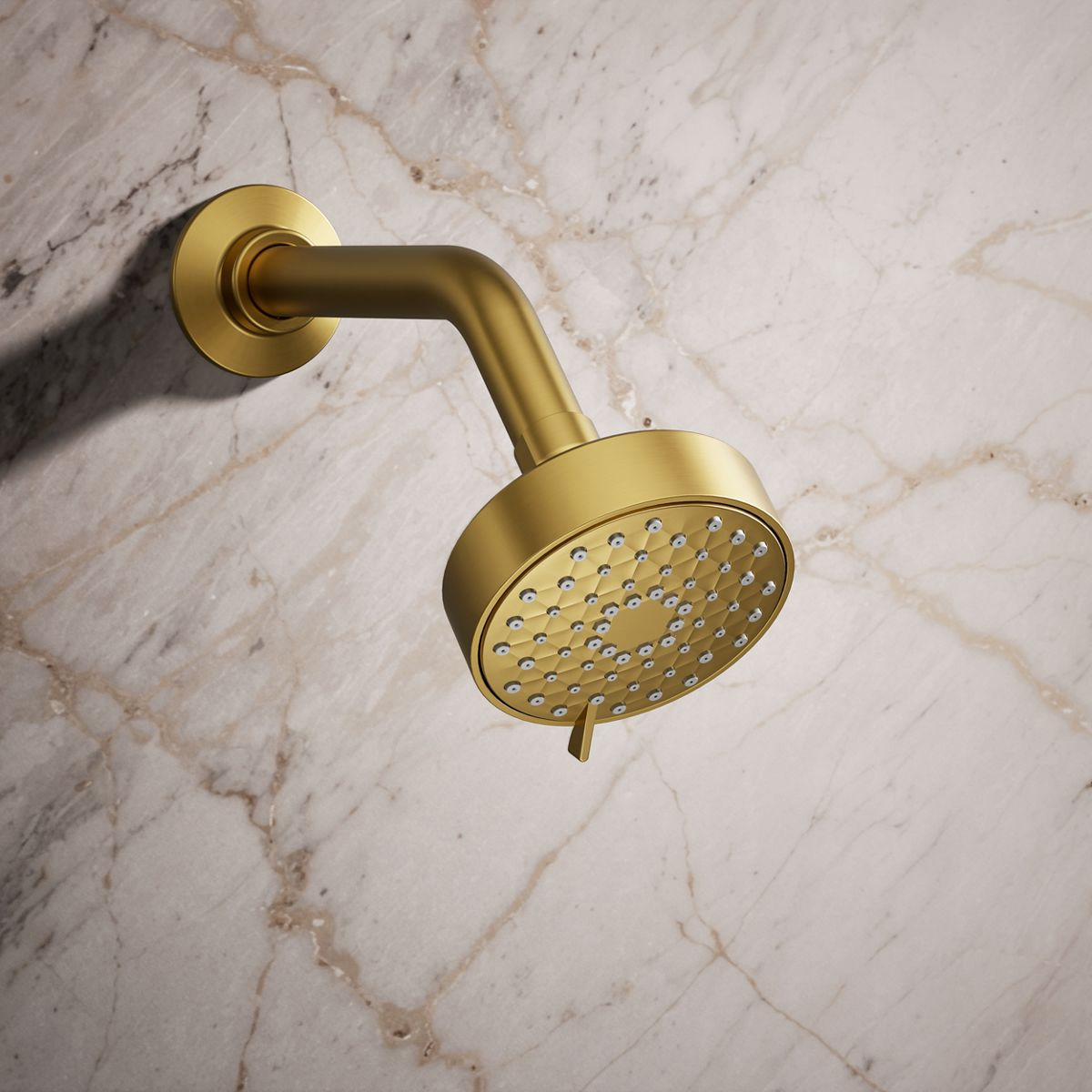 The Awaken showerhead brings KOHLER quality, design, and performance to your bath. Advanced spray performance delivers three distinct sprays - wide coverage, intense drenching, or targeted - while an ergonomically designed thumb tab smoothly transitions between sprays with a quick touch. The artfully sculpted sprayface reveals simple, architectural forms that complement contemporary and minimalist baths.