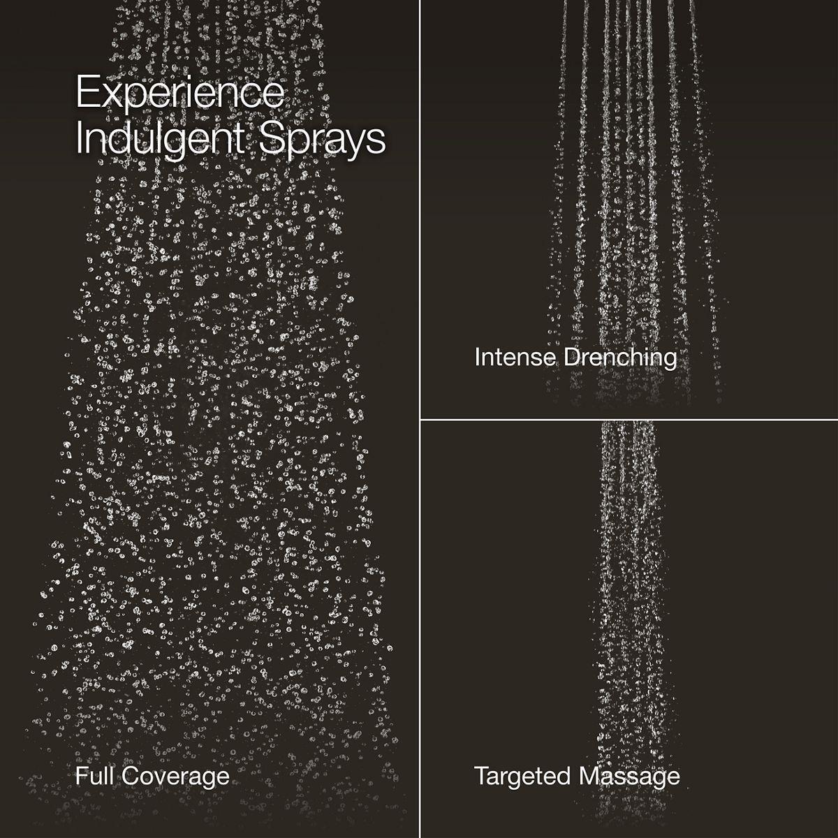 - Advanced spray engine provides three alternate experiences: wide coverage, intense drenching, and targeted spray.