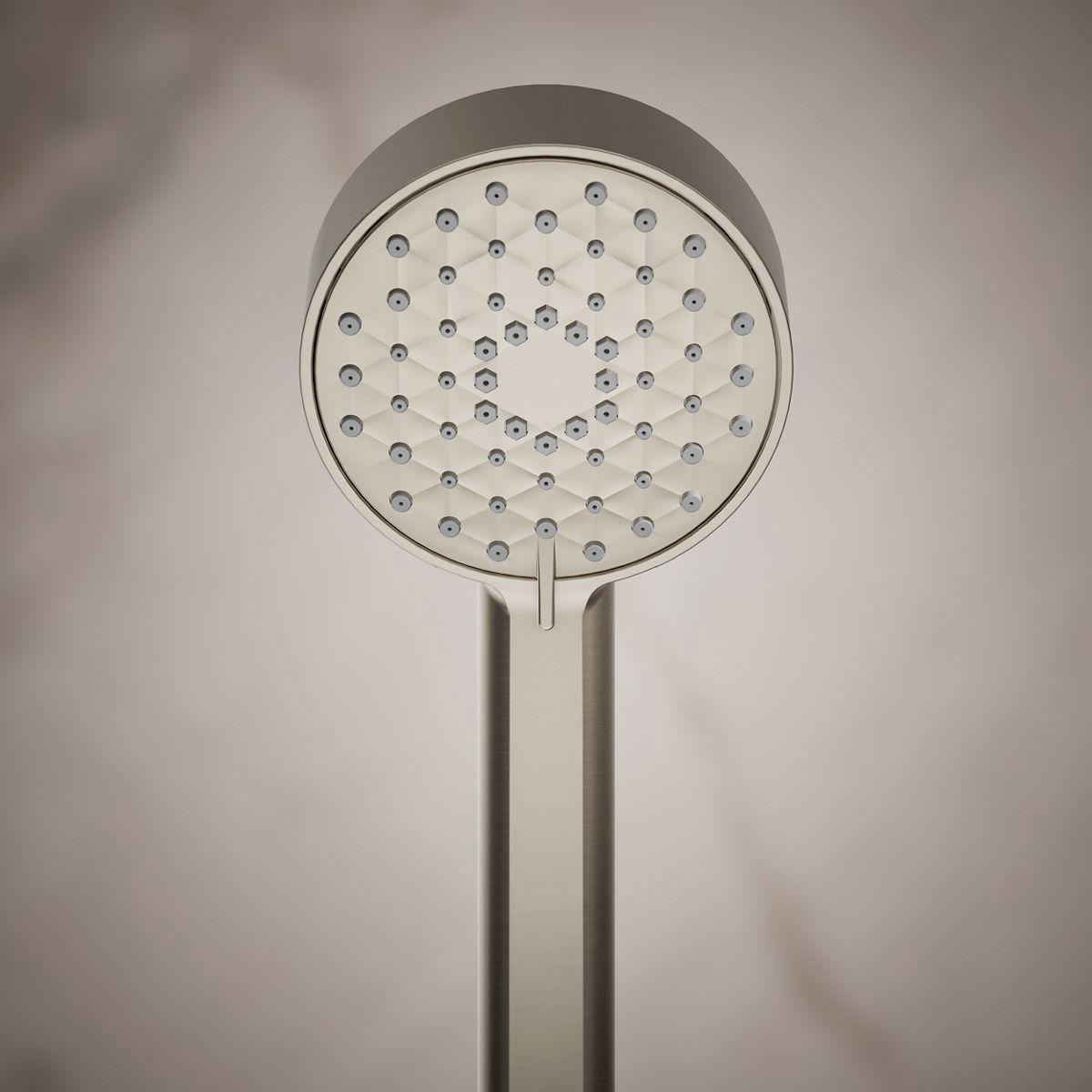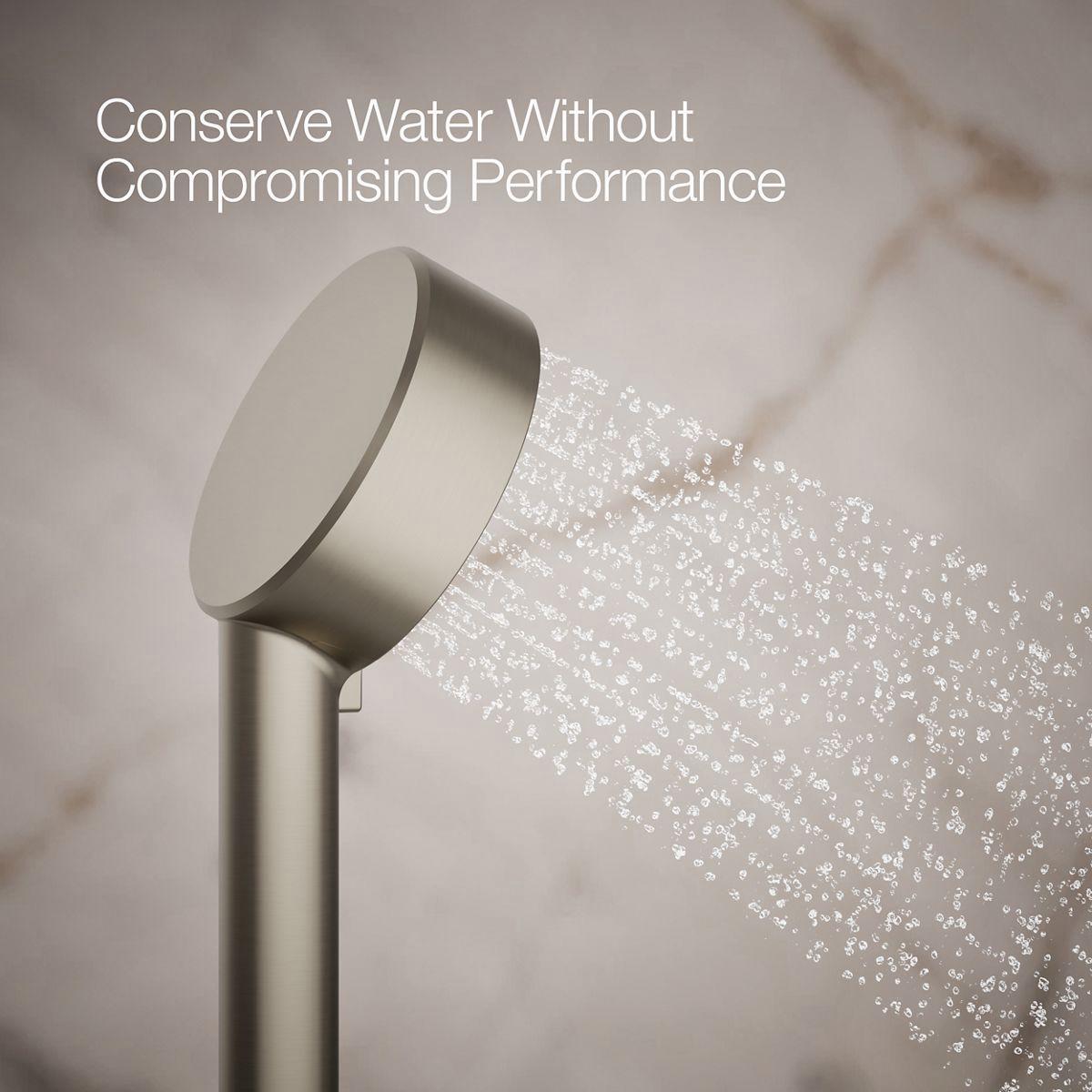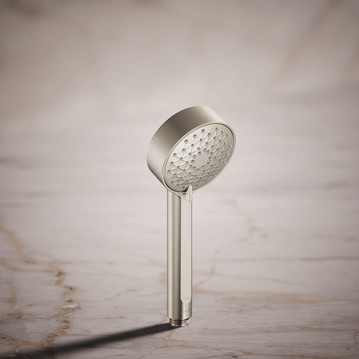 The Awaken handshower brings KOHLER quality, design, and performance to your bath. Advanced spray performance delivers three distinct sprays — wide coverage, intense drenching, and targeted—plus pause feature. The ergonomic design makes for superior comfort and ease of use, with ideal balance and weight in the hand. The artfully sculpted sprayface reveals simple, architectural forms that complement contemporary and minimalist baths.