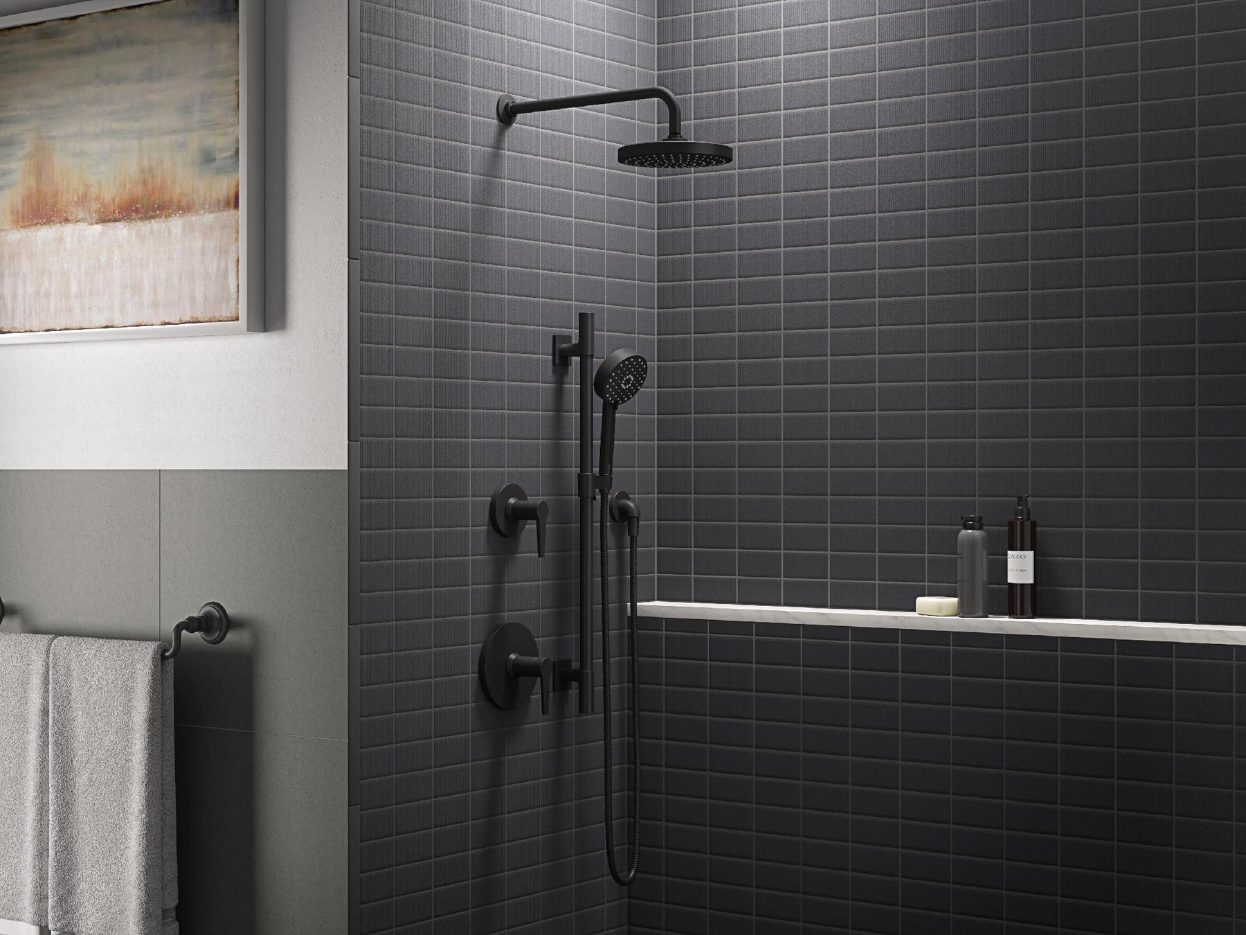 The Awaken showering kit is a simple way to upgrade your shower. This Awaken showering kit includes a single-function rainhead, ergonomically designed multifunction handshower, 24" slidebar, rainhead arm with flange, supply elbow with check valve, 60" handshower hose, valve trim, and mounting hardware. Complete the installation with Rite-Temp and MasterShower® valves.