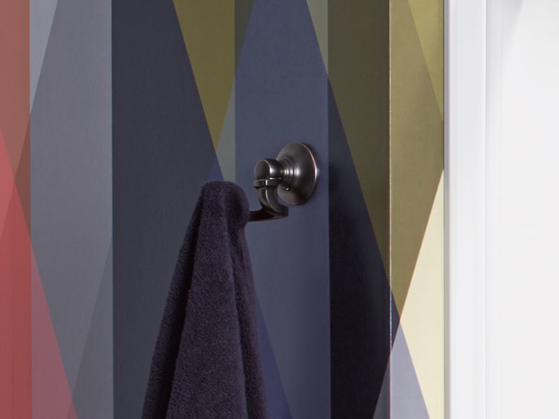 Bancroft accessories capture the elegance of early 1900s American design with their traditional and enduring style. This unique robe hook provides convenient storage while lending a classic touch to the bathroom.