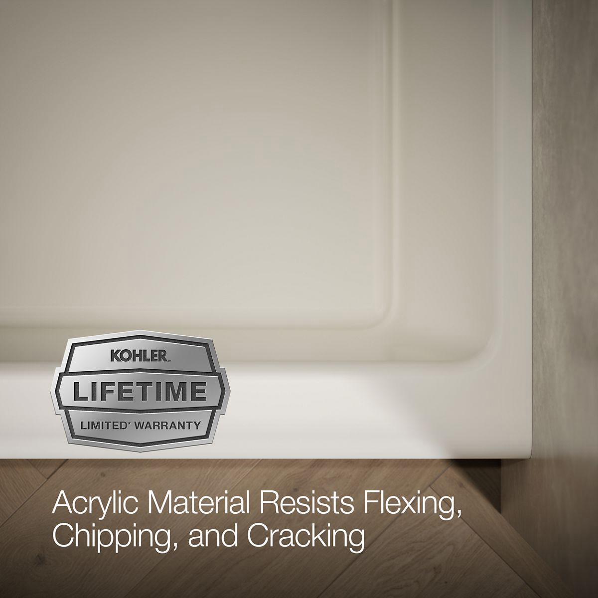 - Integral flange helps prevent water from seeping behind wall and simplifies alcove installation.